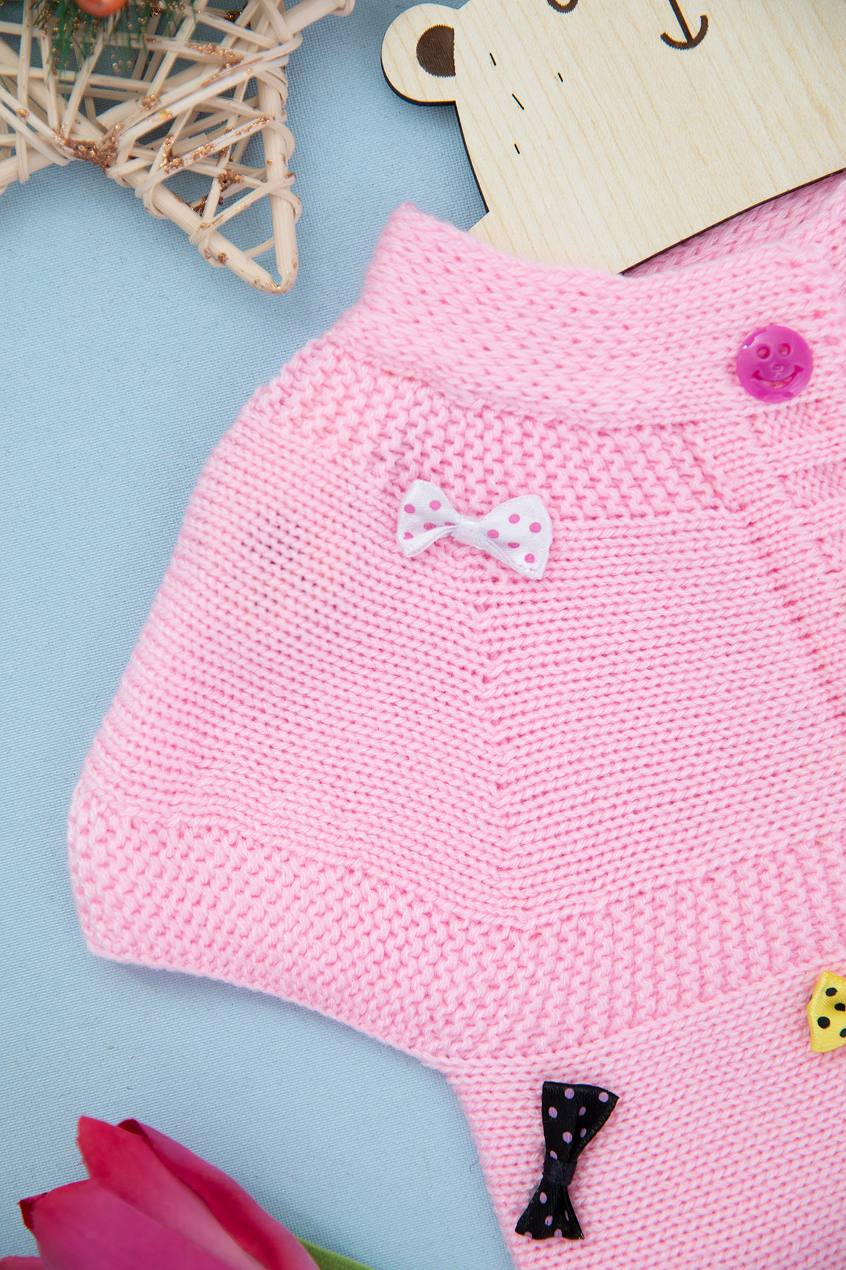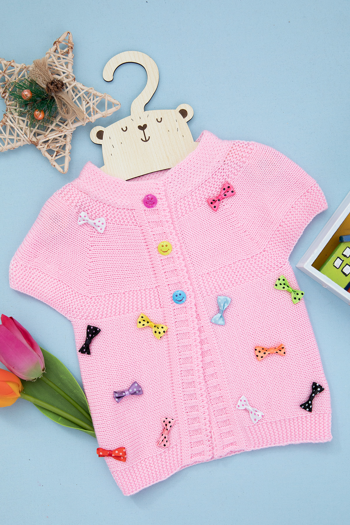 Kız Çocuk Renkli Fiyonklu Yelek - 475 (1-5 Yaş)