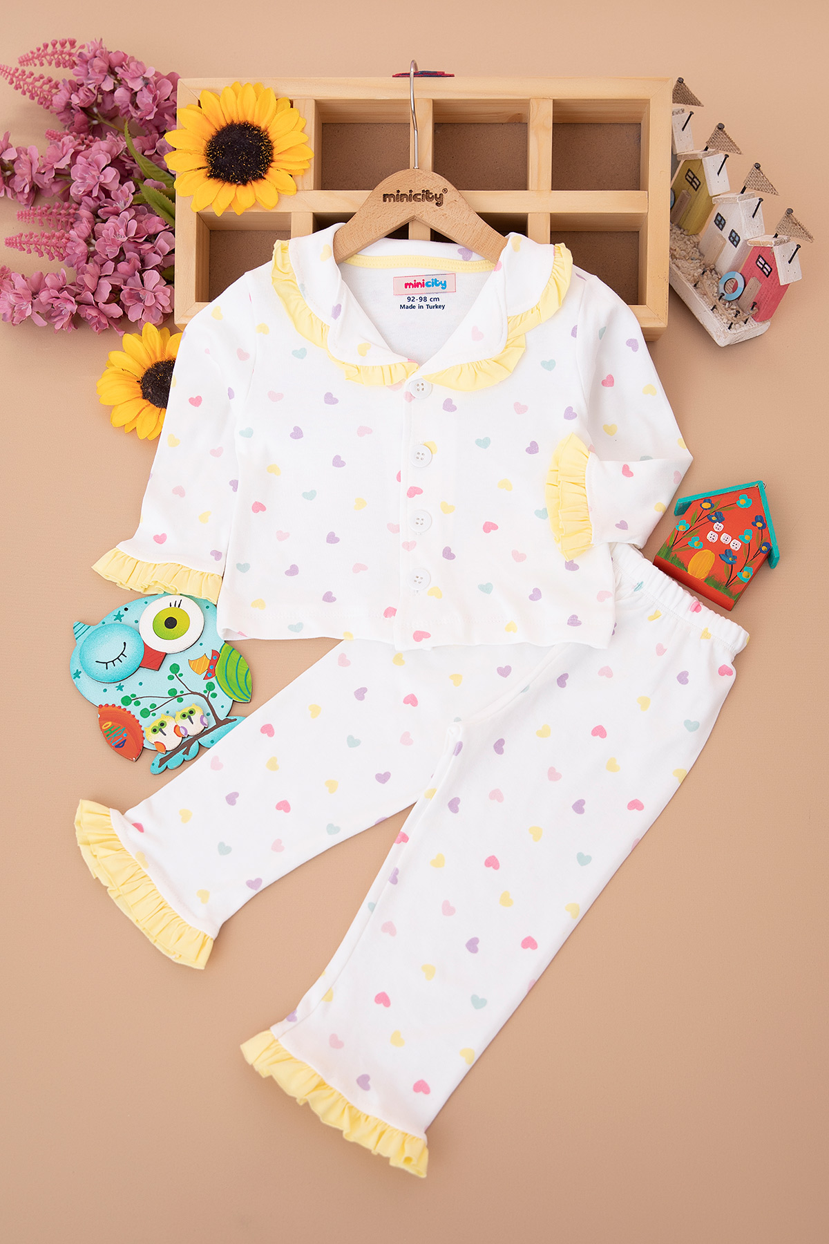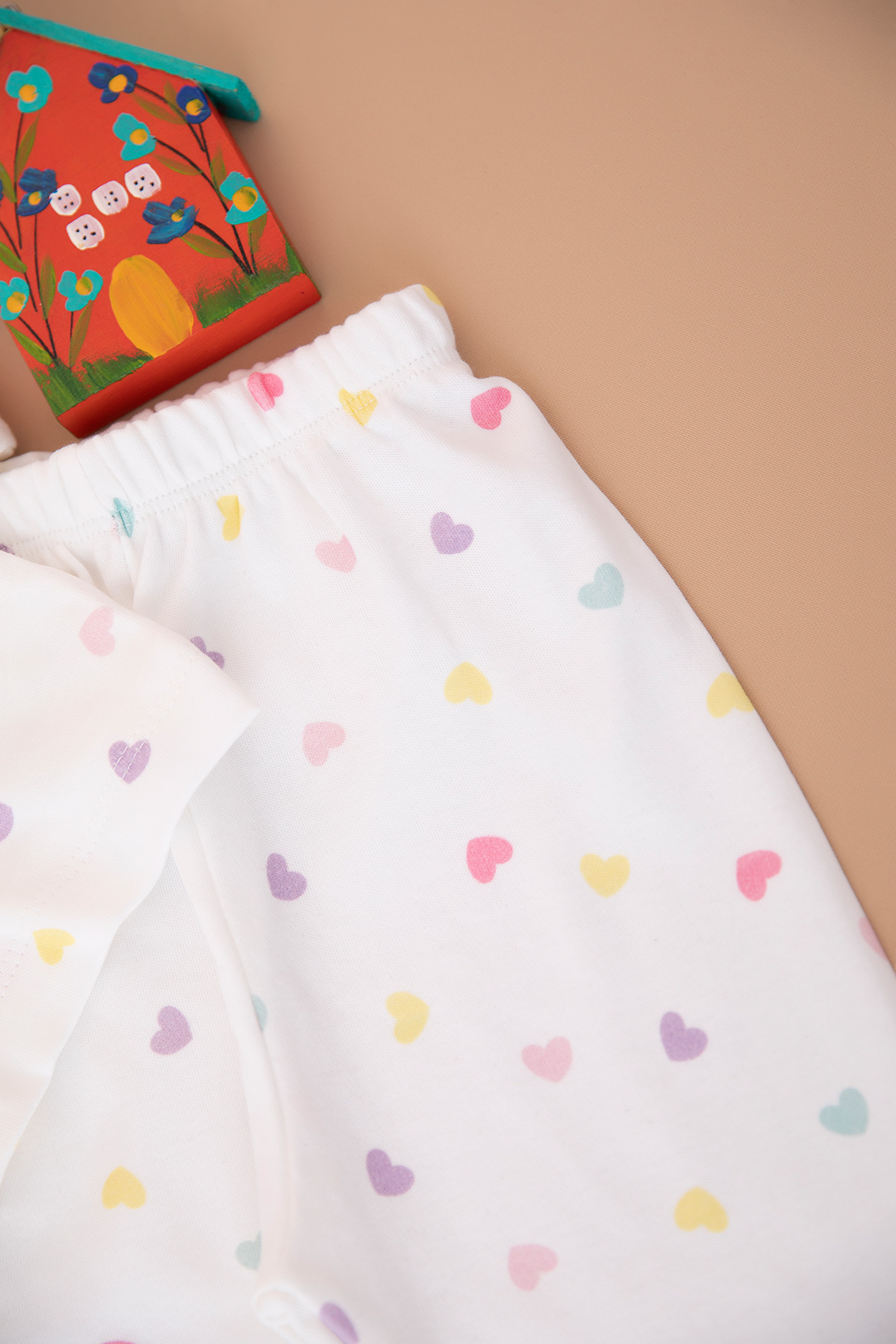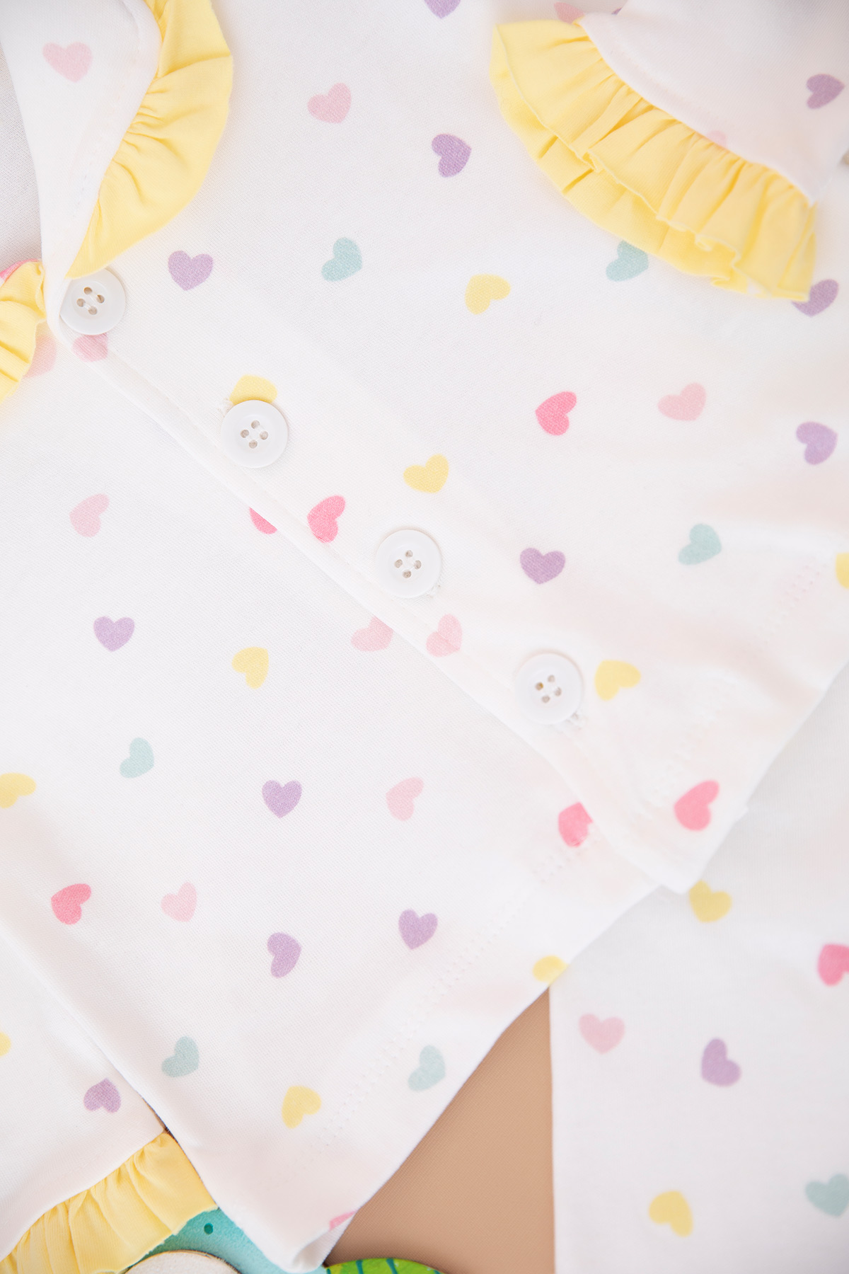 Kız Çocuk Renkli Kalp Baskılı Pijama Takım - 089 (3-6 Yaş)
