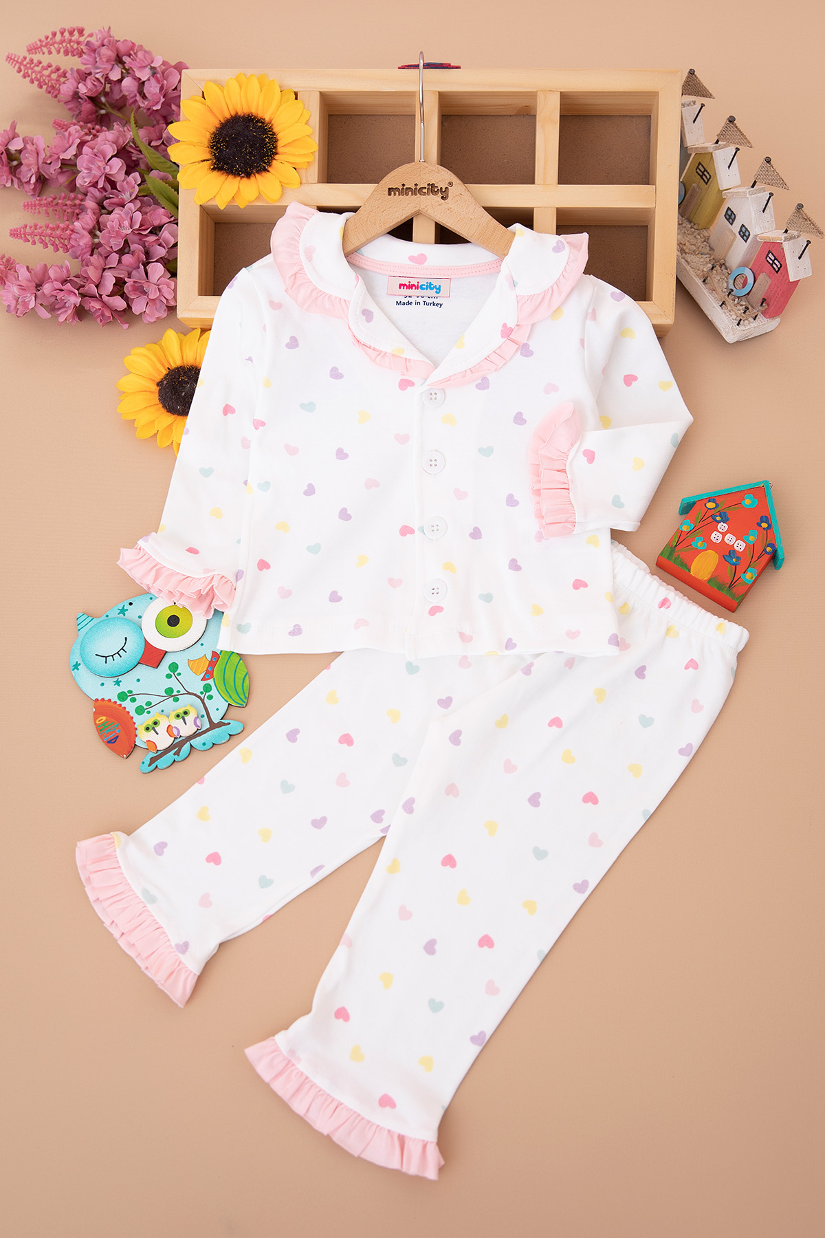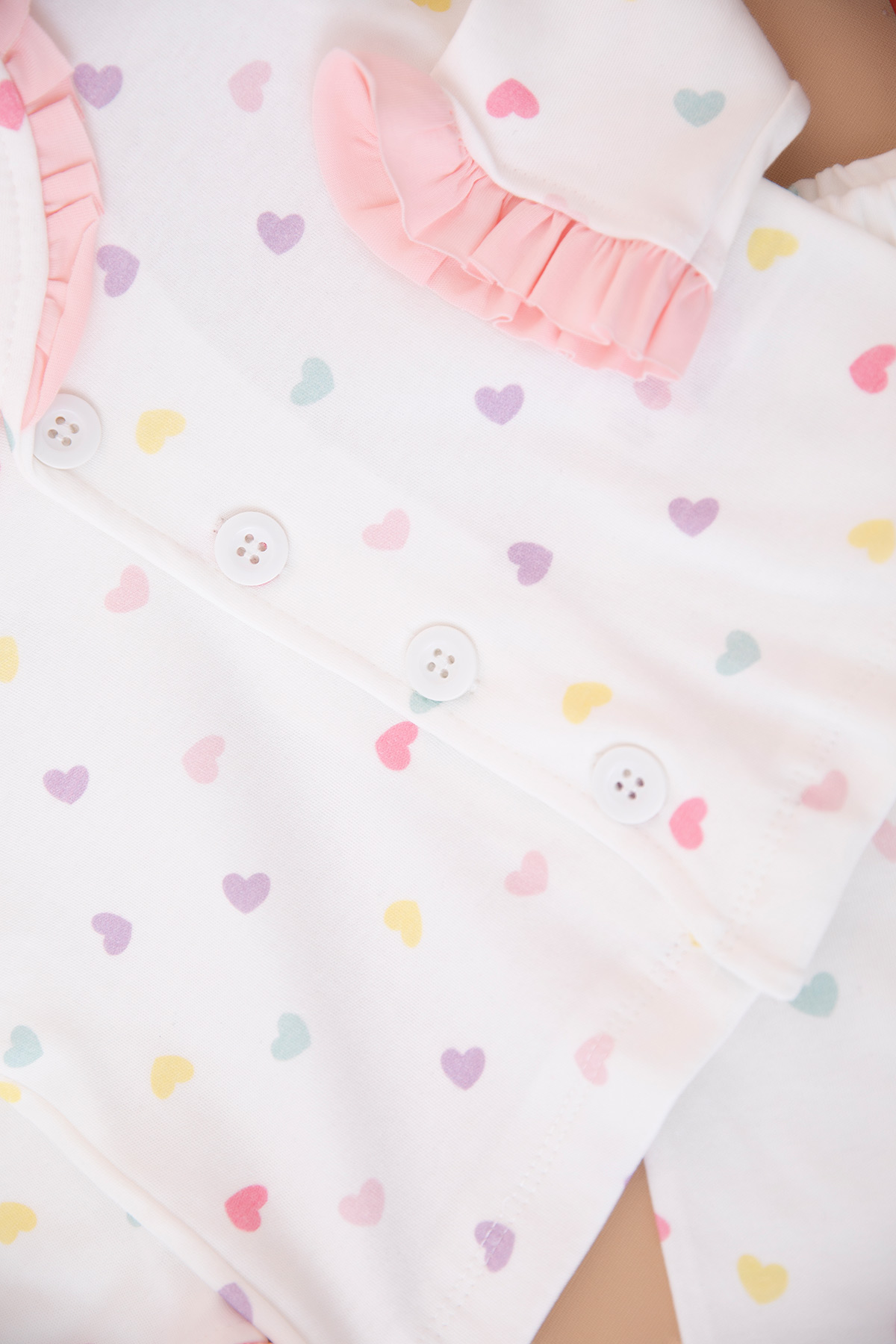 Kız Çocuk Renkli Kalp Baskılı Pijama Takım - 089 (3-6 Yaş)