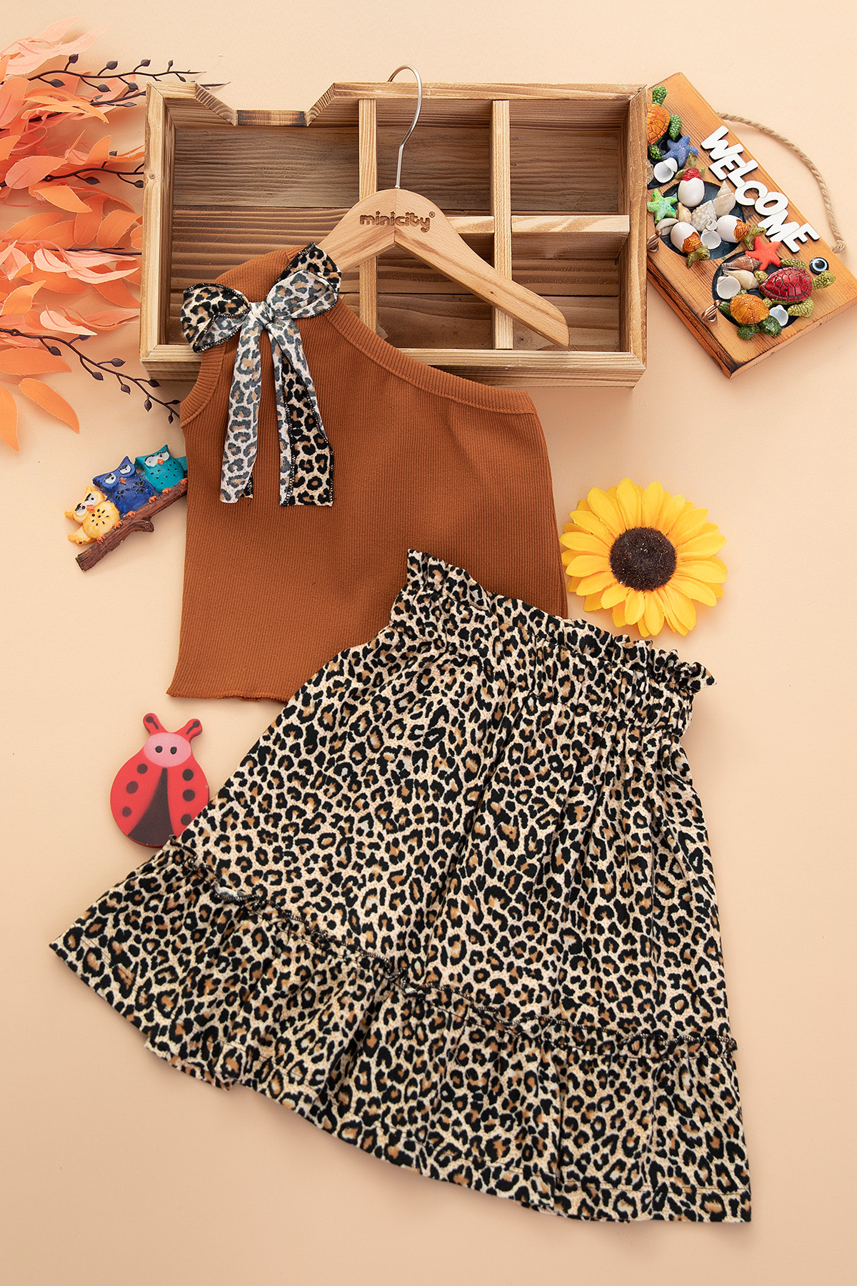 Kız Çocuk Ribana Leopar Etekli Takım - 12621 (5-9 Yaş)