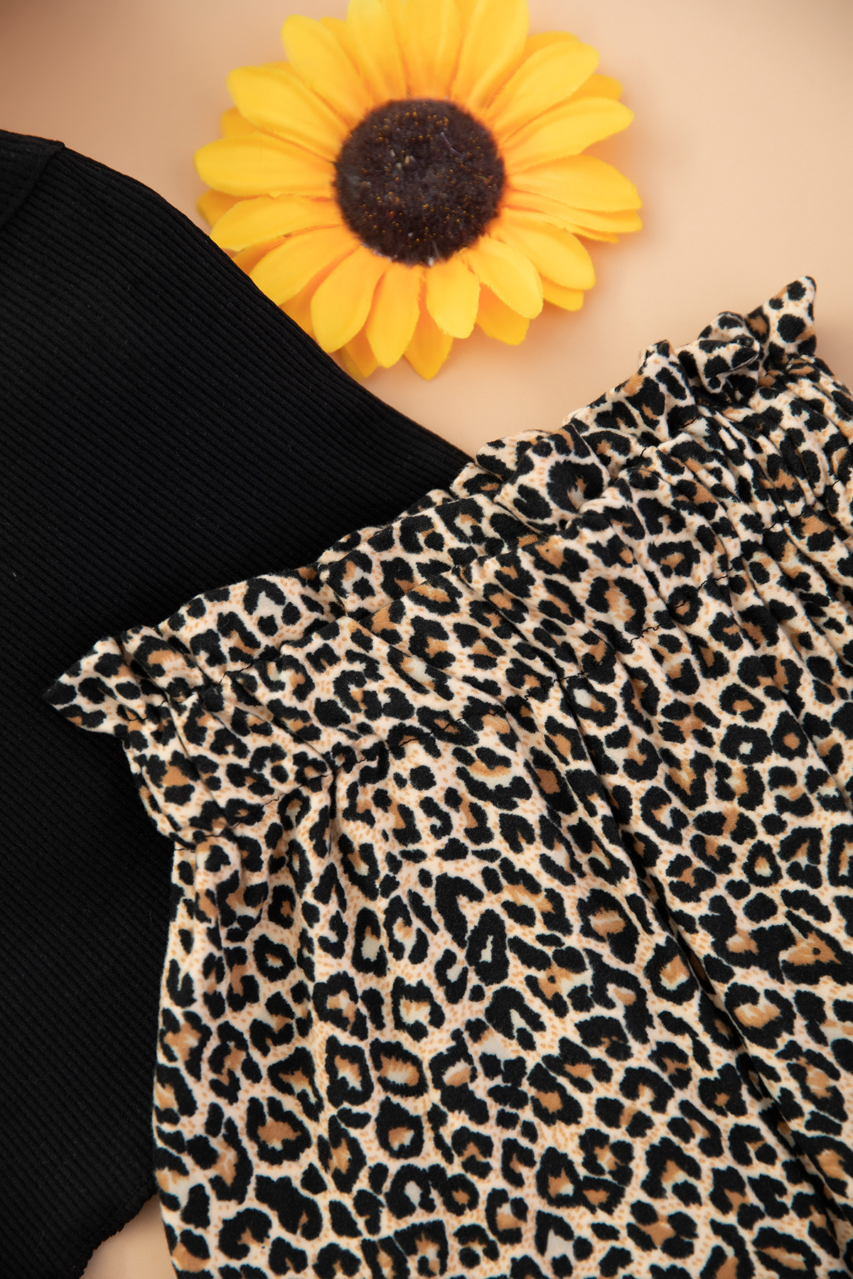 Kız Çocuk Ribana Leopar Etekli Takım - 12621 (5-9 Yaş)