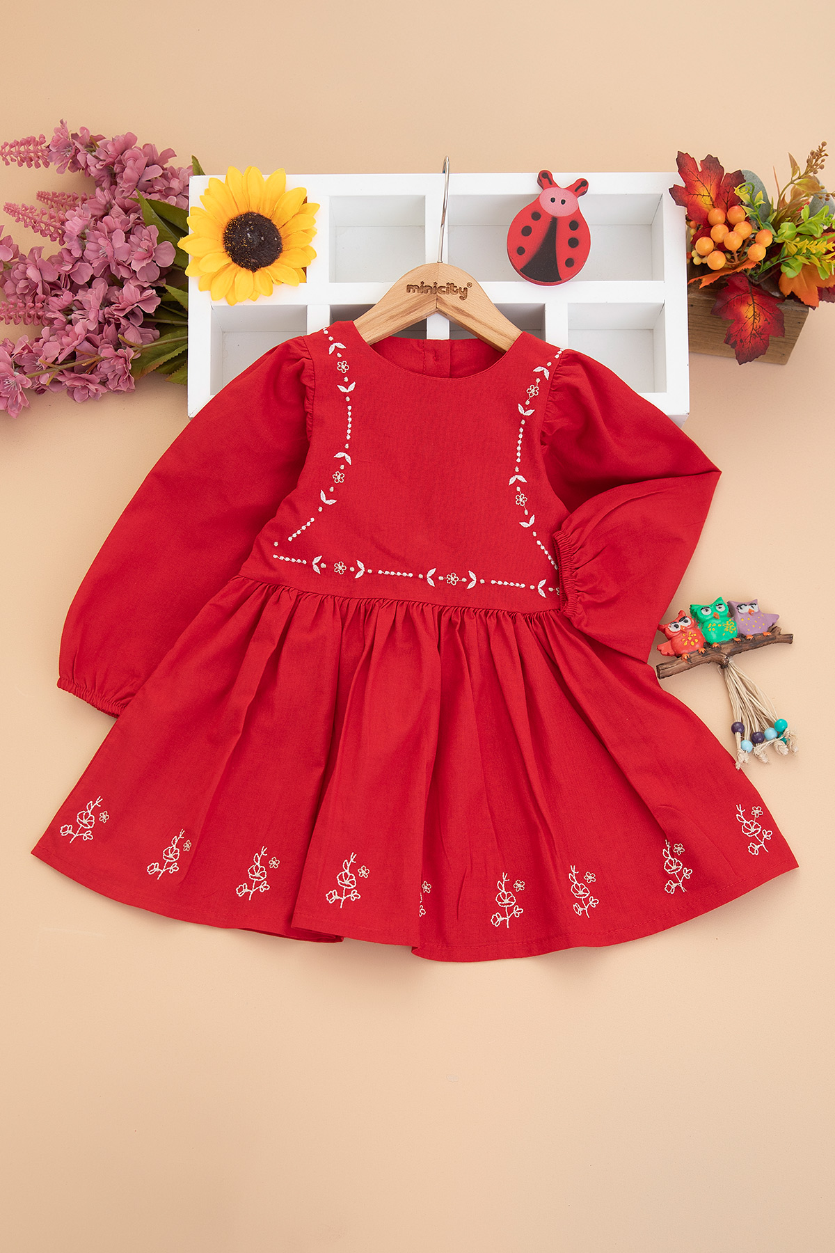 Kız Çocuk Roba Etek Nakışlı Elbise - 3083 (2-6 Yaş)