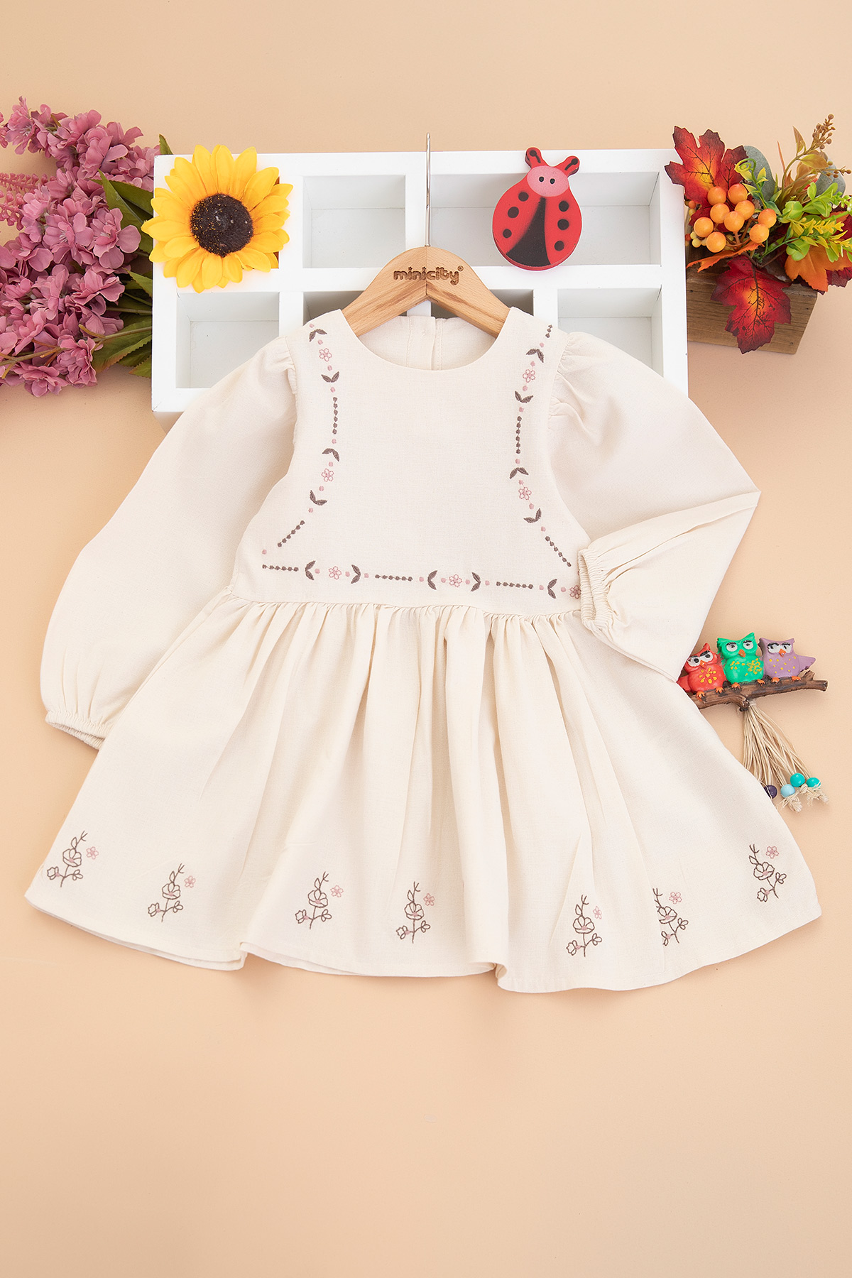 Kız Çocuk Roba Etek Nakışlı Elbise - 3083 (2-6 Yaş)