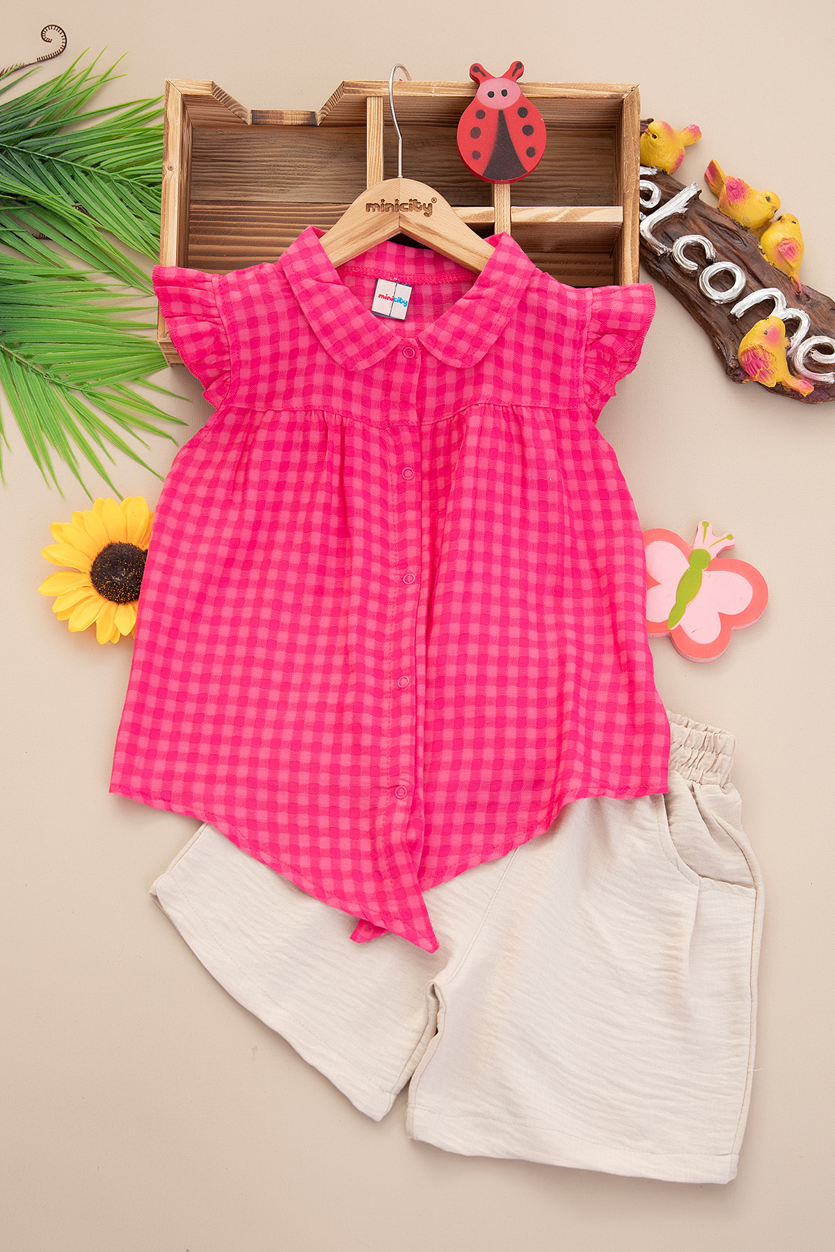 Kız Çocuk Robalı Bağlamalı Şortlu Takım - 25172 (3-6 Yaş)