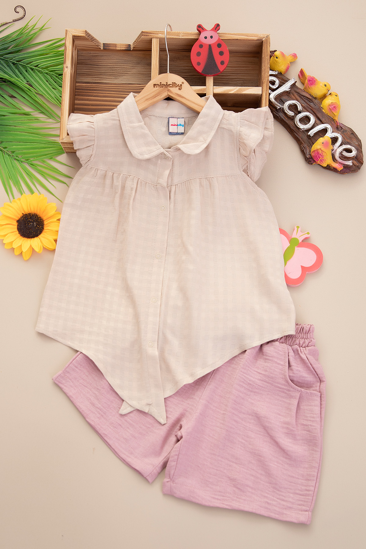 Kız Çocuk Robalı Bağlamalı Şortlu Takım - 25172 (3-6 Yaş)