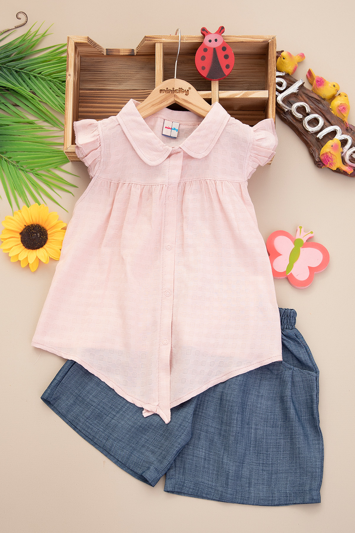 Kız Çocuk Robalı Bağlamalı Şortlu Takım - 25177 (7-10 Yaş)