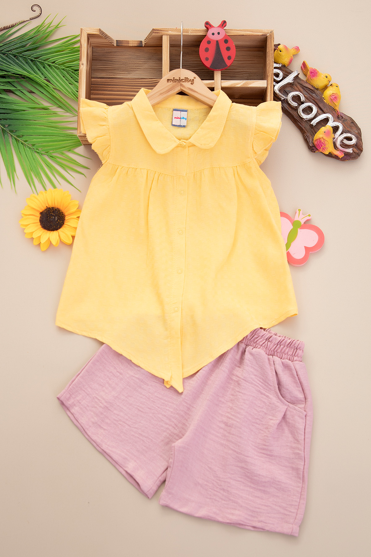 Kız Çocuk Robalı Bağlamalı Şortlu Takım - 25177 (7-10 Yaş)