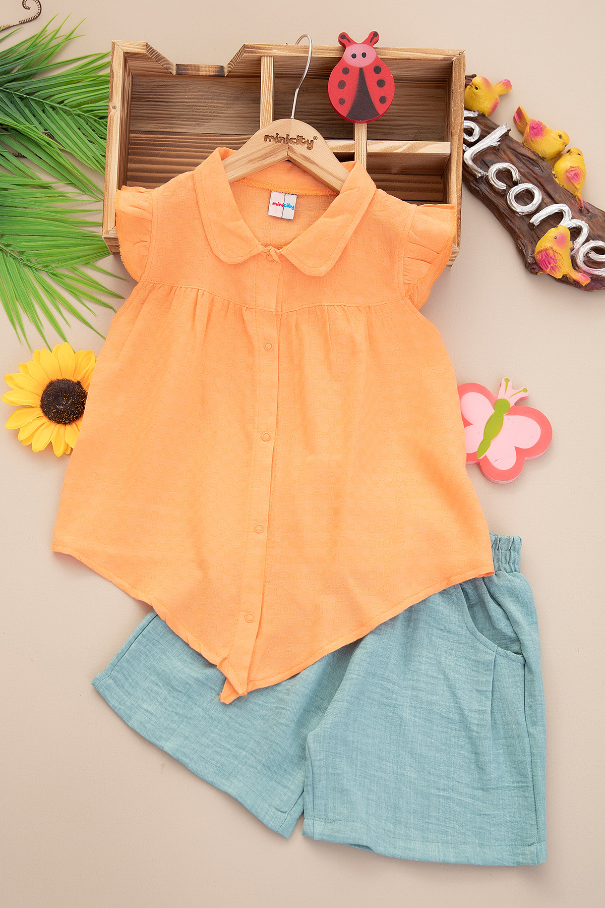 Kız Çocuk Robalı Bağlamalı Şortlu Takım - 25177 (7-10 Yaş)