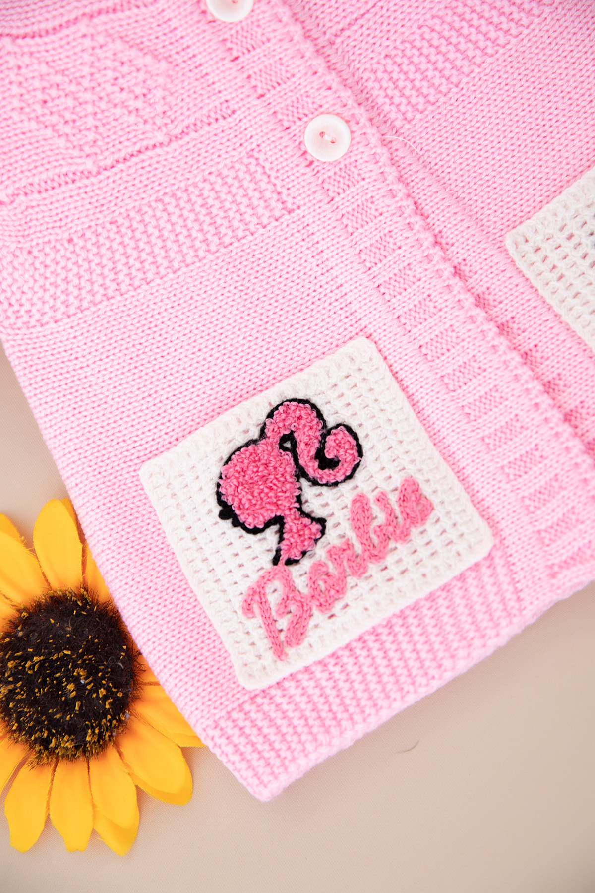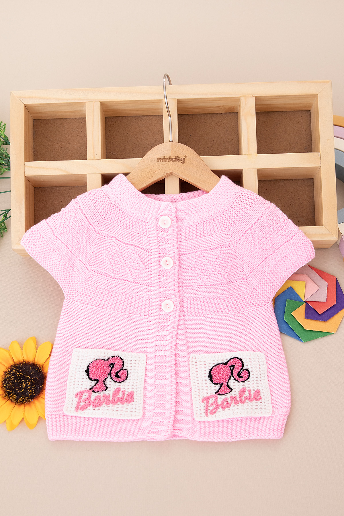 Kız Çocuk Robalı Barbie Cepli Triko Yelek - 501 (1-5 Yaş)