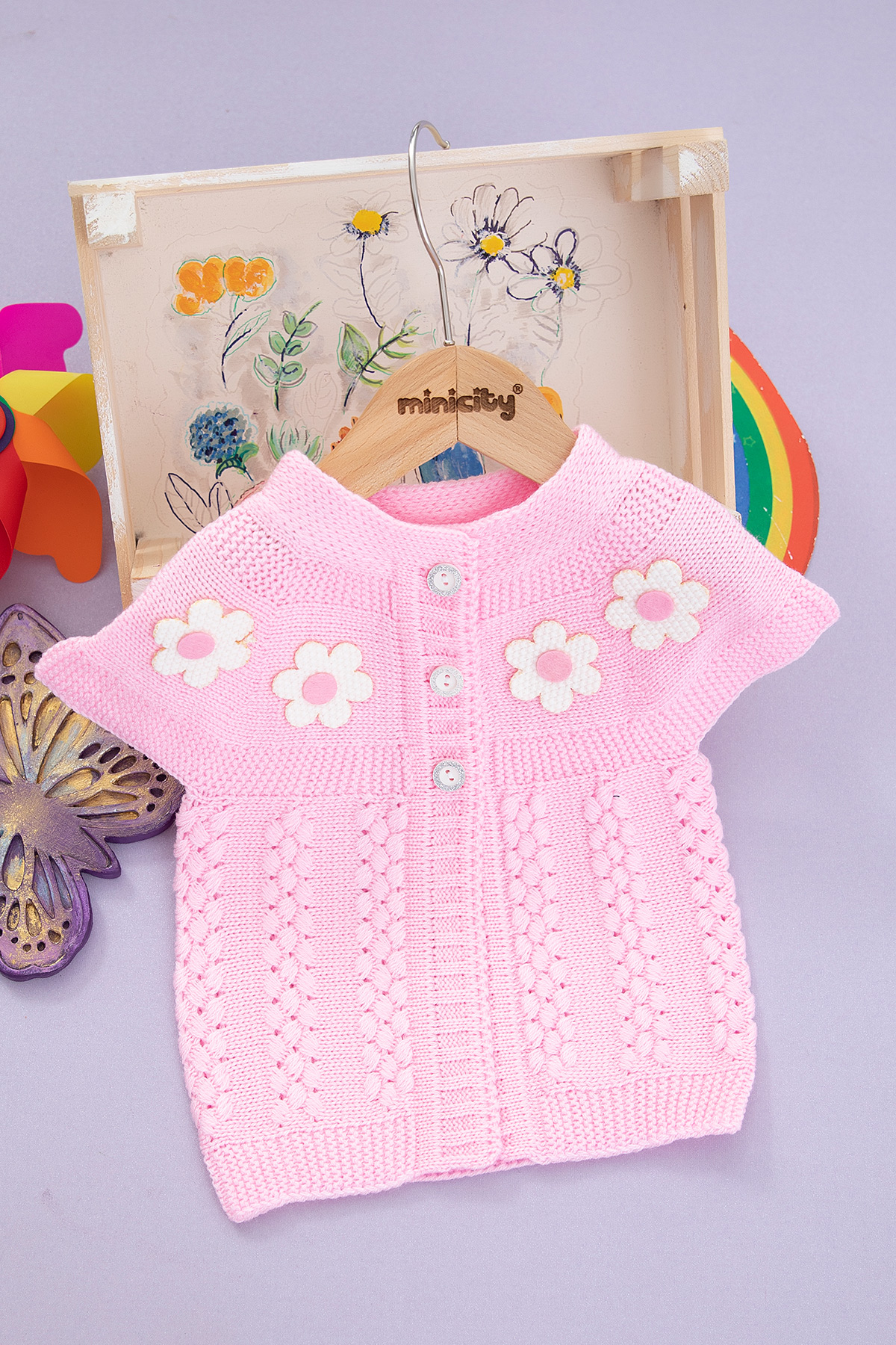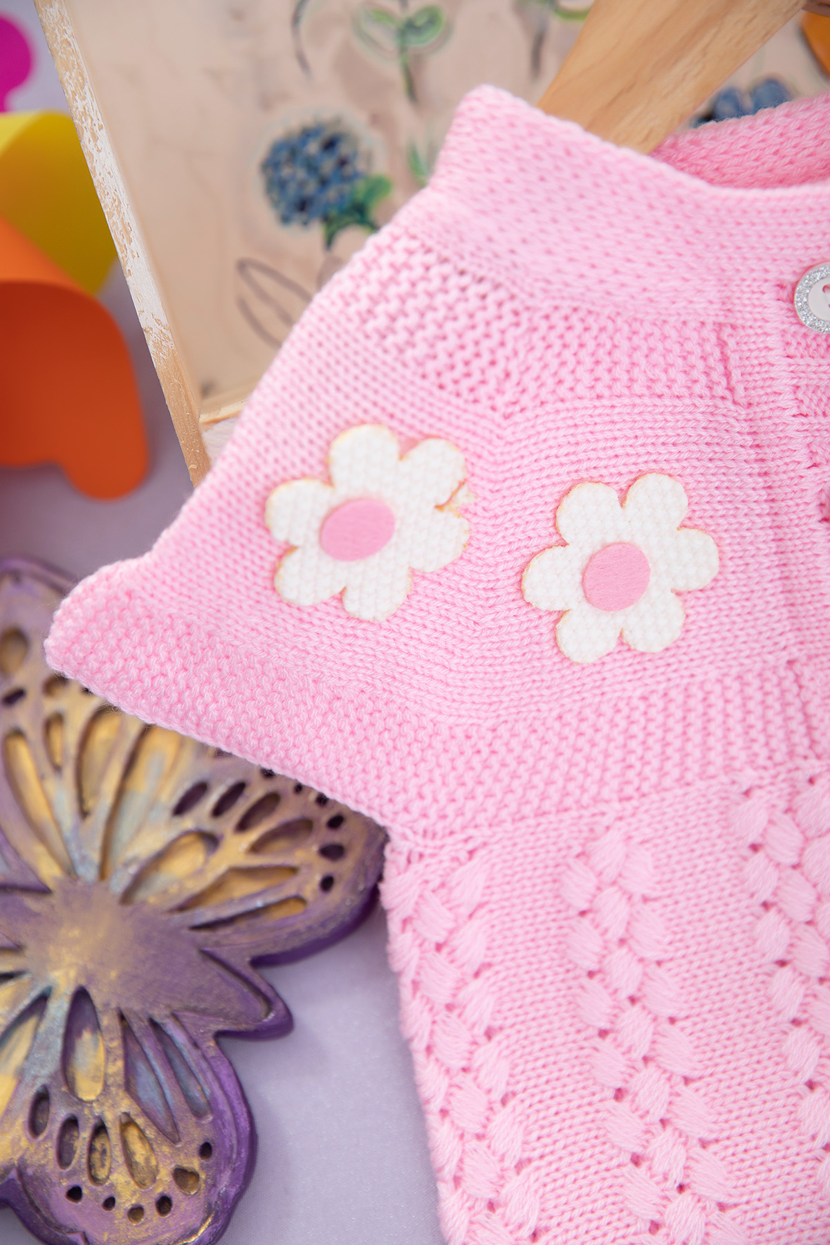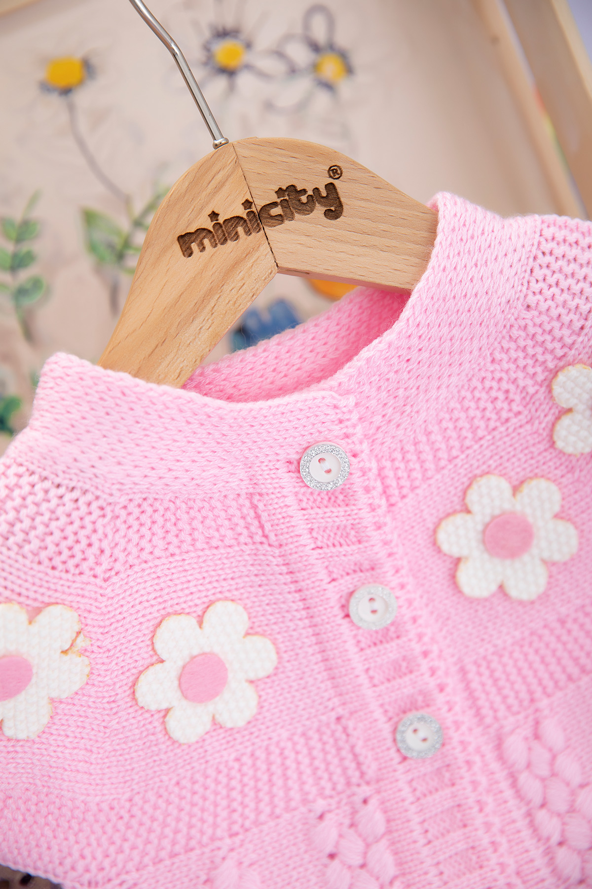 Kız Çocuk Robalı Çiçekli Triko Yelek - 0482 (1-5 Yaş)