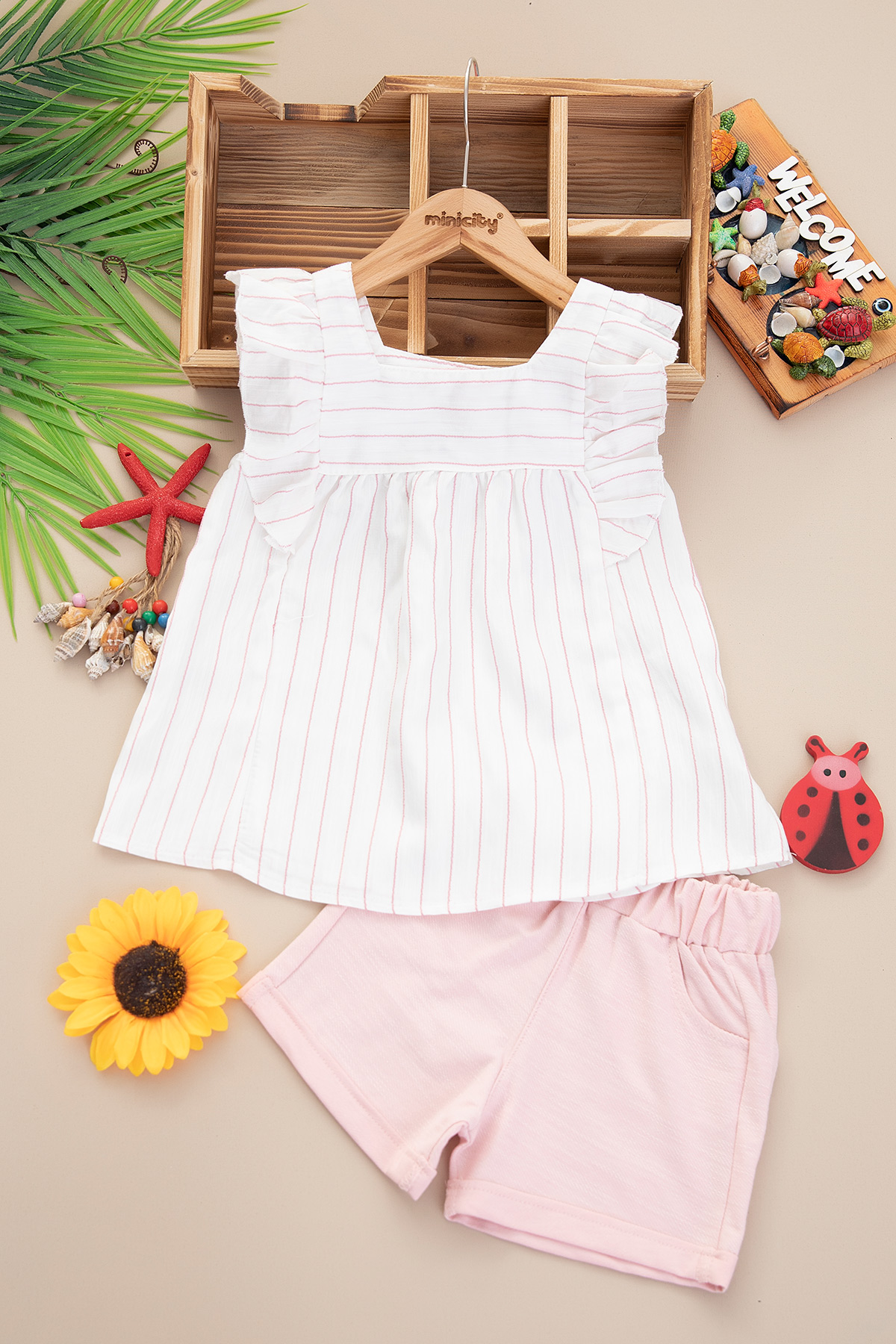 Kız Çocuk Robalı Çizgili Şortlu Takım - 25150 (3-6 Yaş)