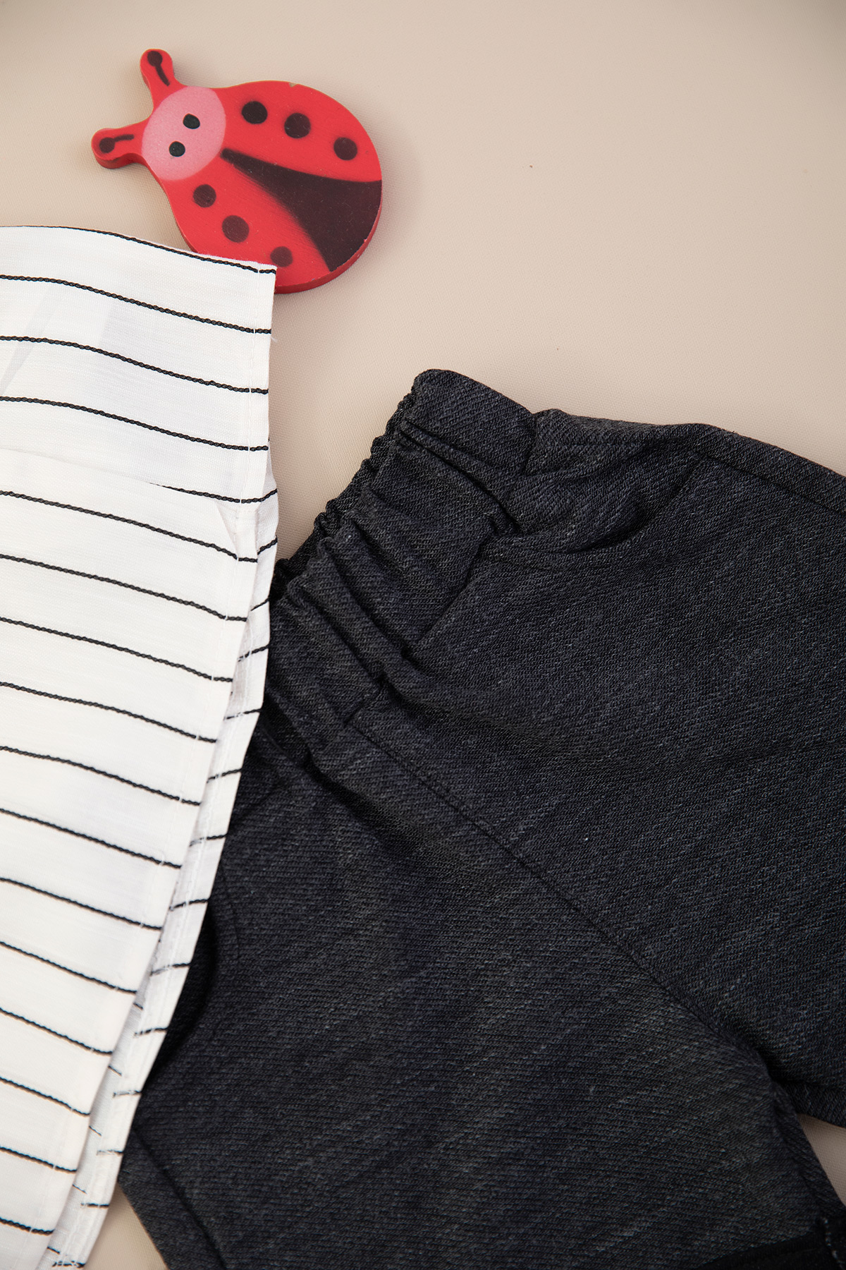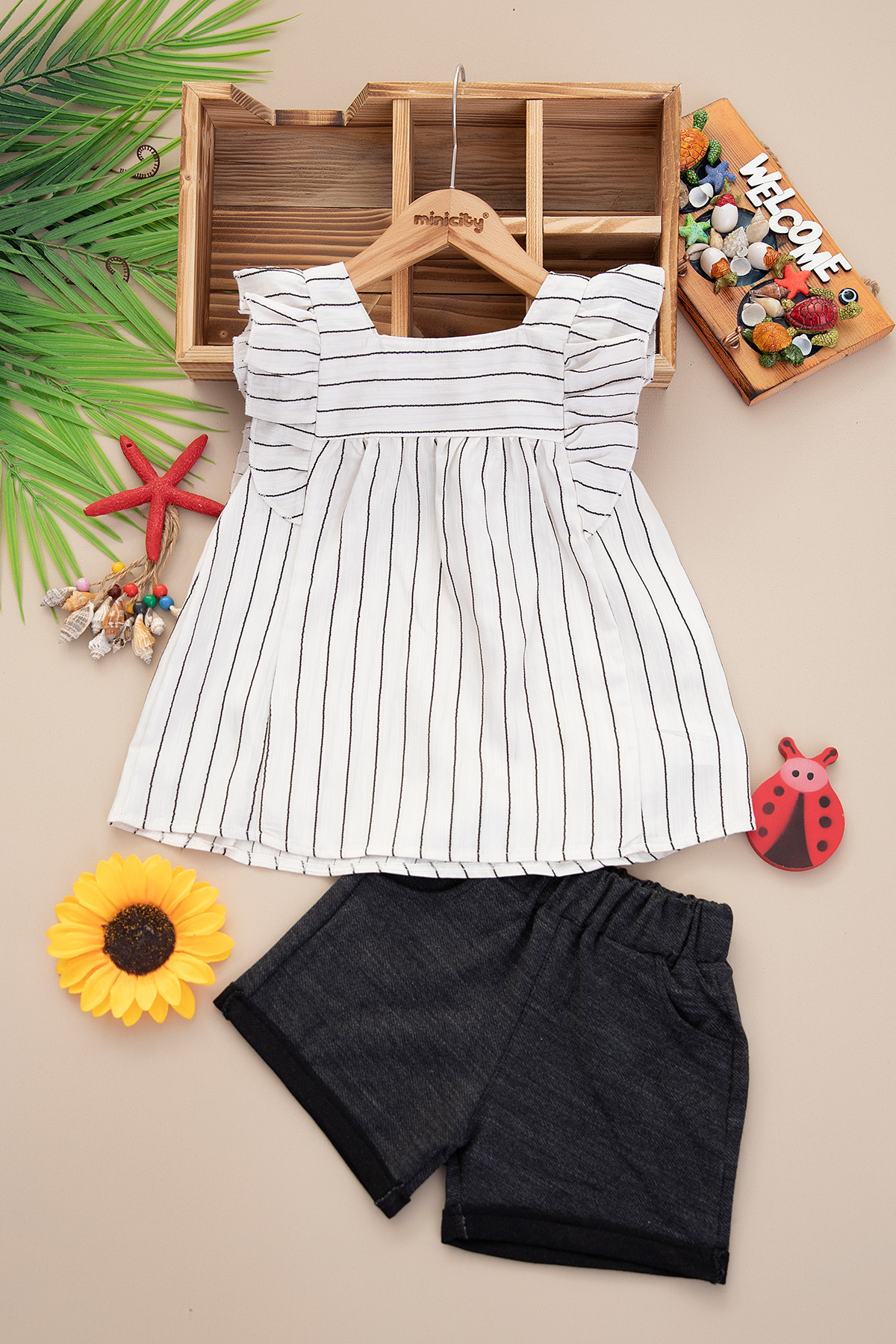 Kız Çocuk Robalı Çizgili Şortlu Takım - 25150 (3-6 Yaş)