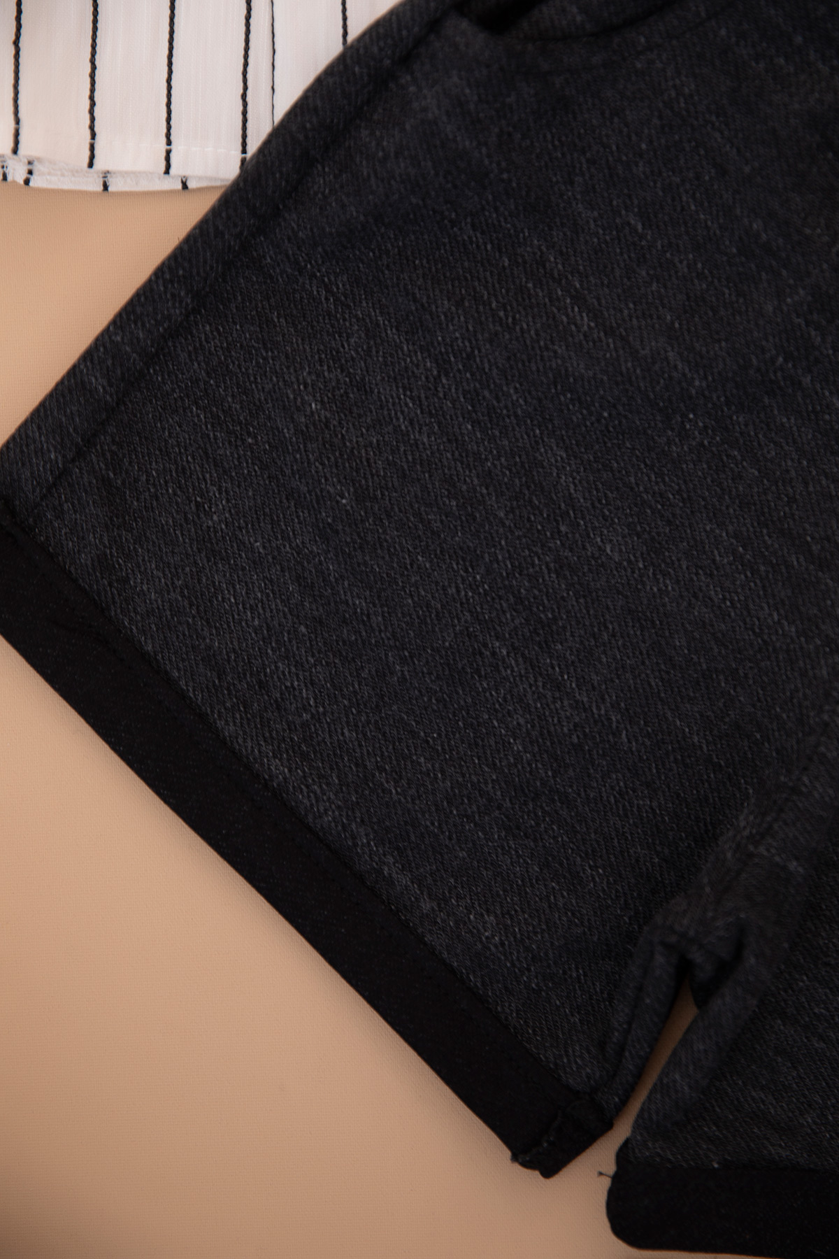 Kız Çocuk Robalı Çizgili Şortlu Takım - 25156 (7-10 Yaş)