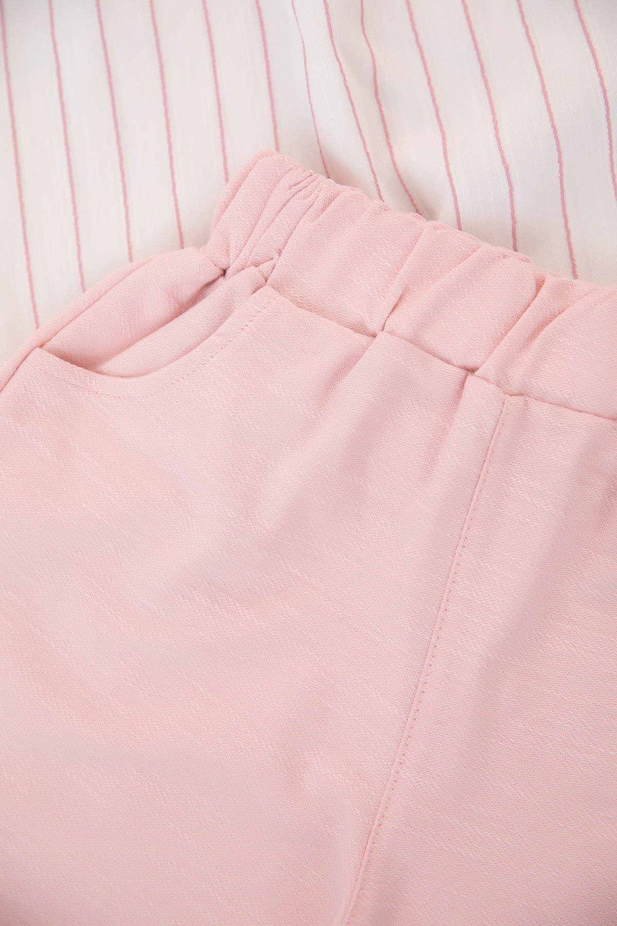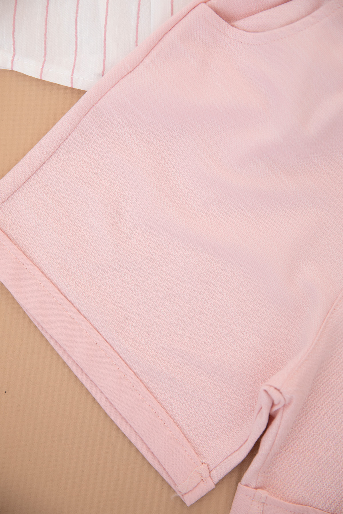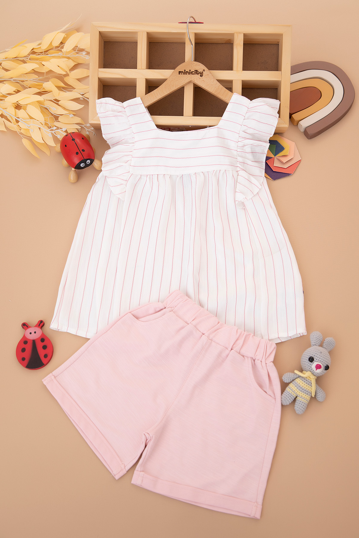 Kız Çocuk Robalı Çizgili Şortlu Takım - 25156 (7-10 Yaş)