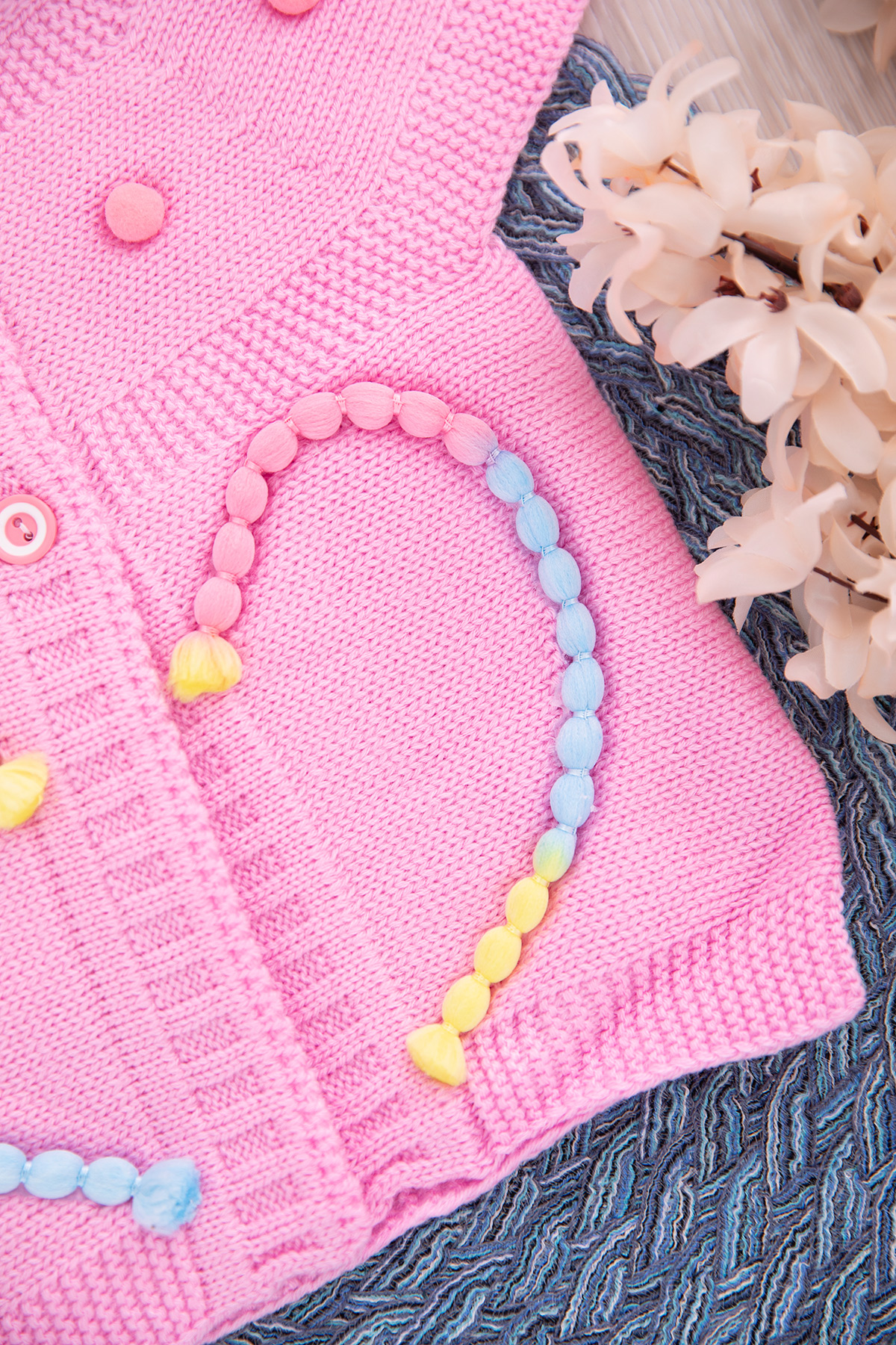 Kız Çocuk Robalı Kalpli Şeritli Yelek - 421 (1-5 Yaş)