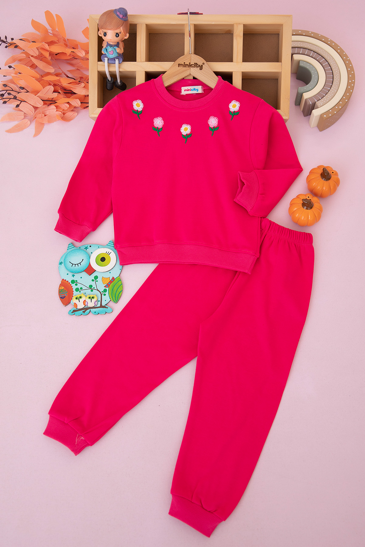 Kız Çocuk Robası Çiçek Nakışlı Mevsimlik Takım (6-9 Yaş)