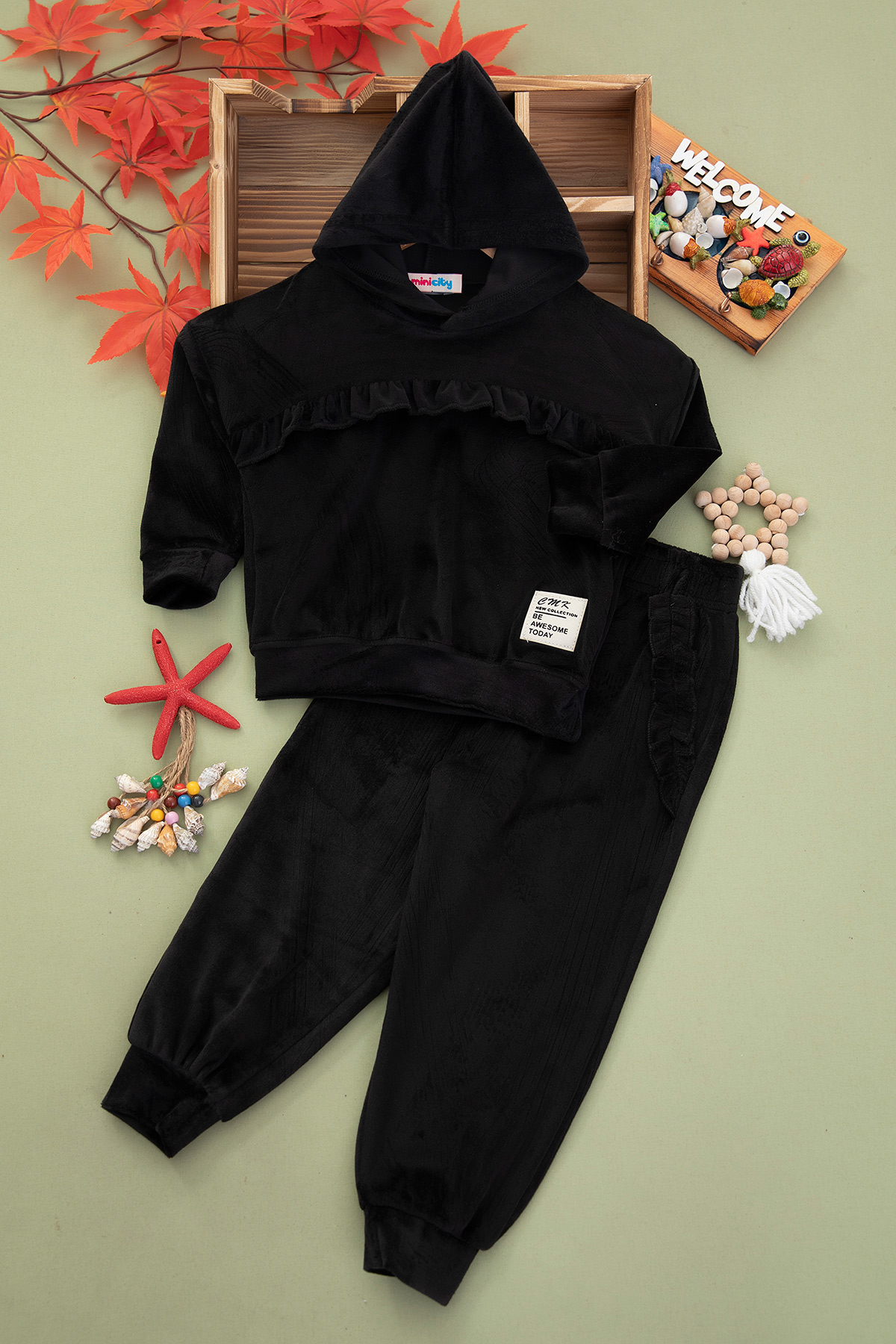 Kız Çocuk Robası Fırfırlı Kadife Takım - 190520 (4-11 Yaş)