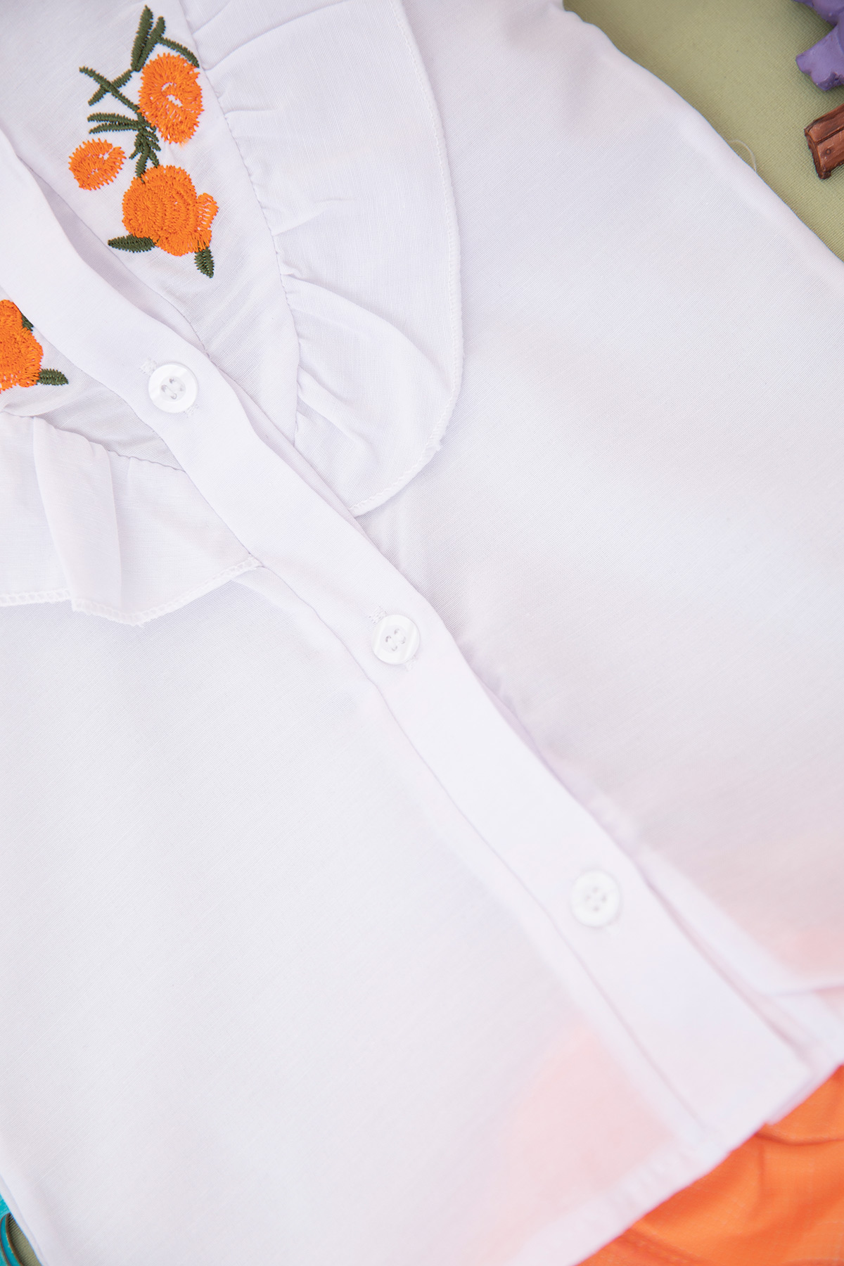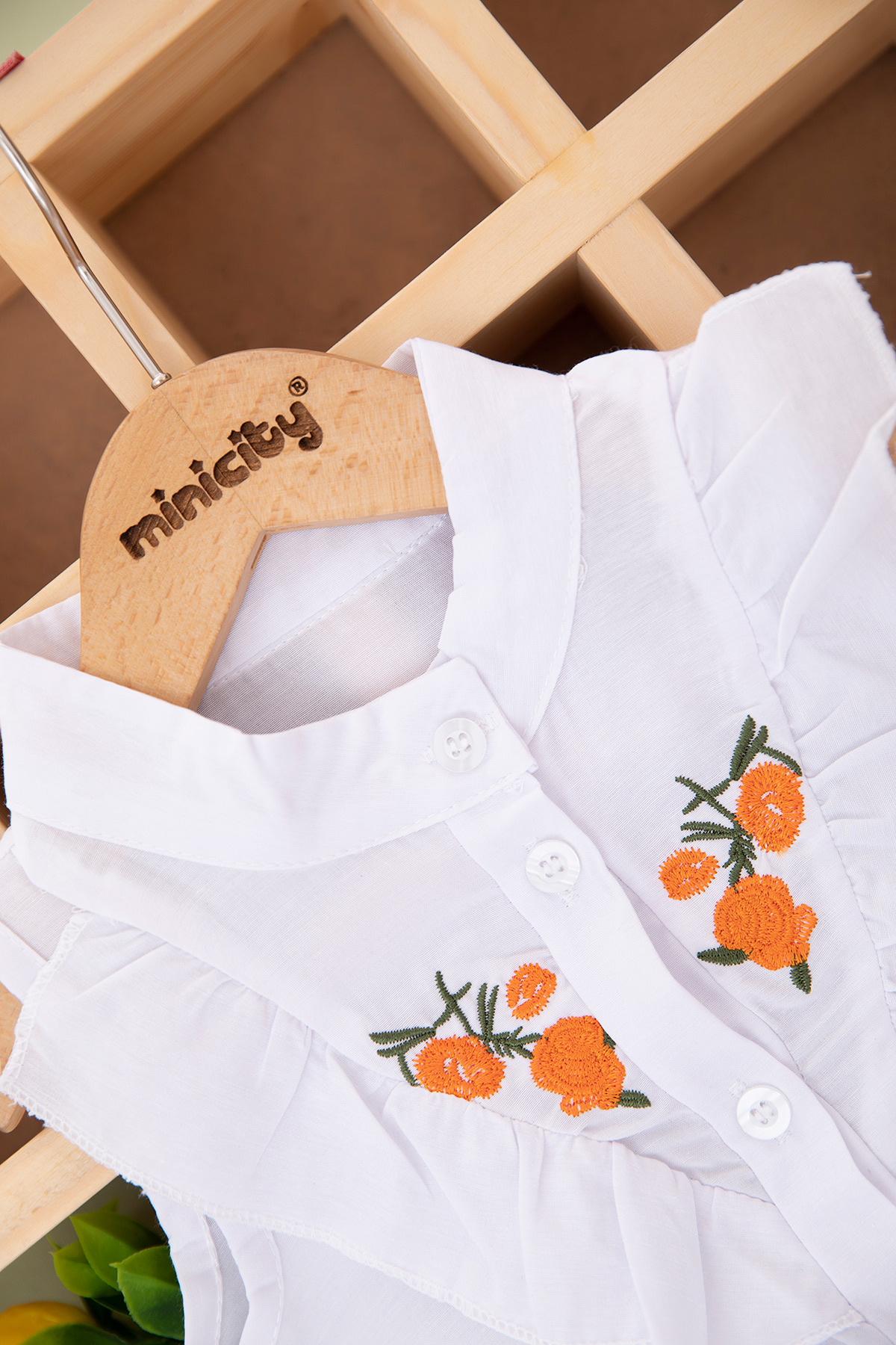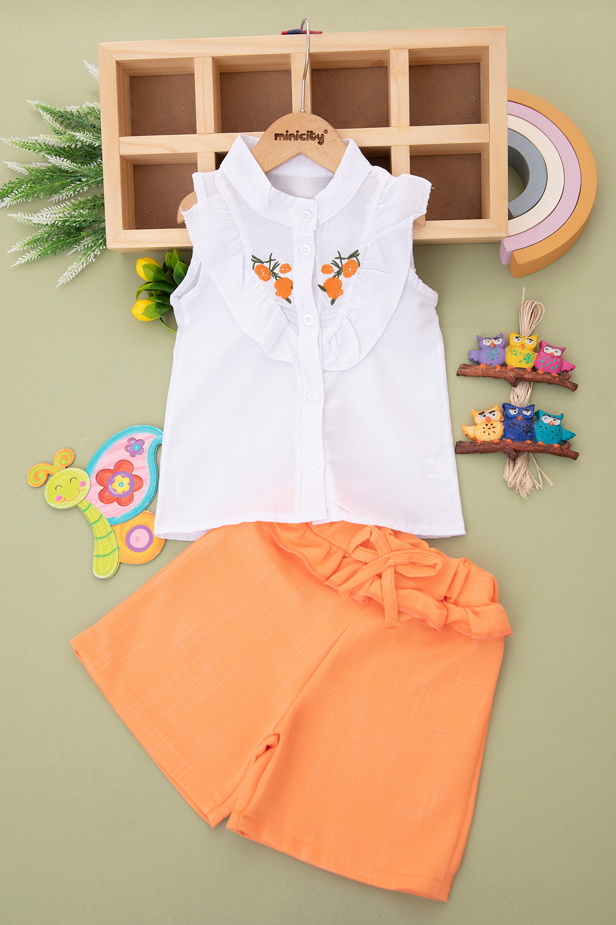 Kız Çocuk Robası Fırfırlı Nakışlı Gömlek Şort Takım (3-10 Yaş)