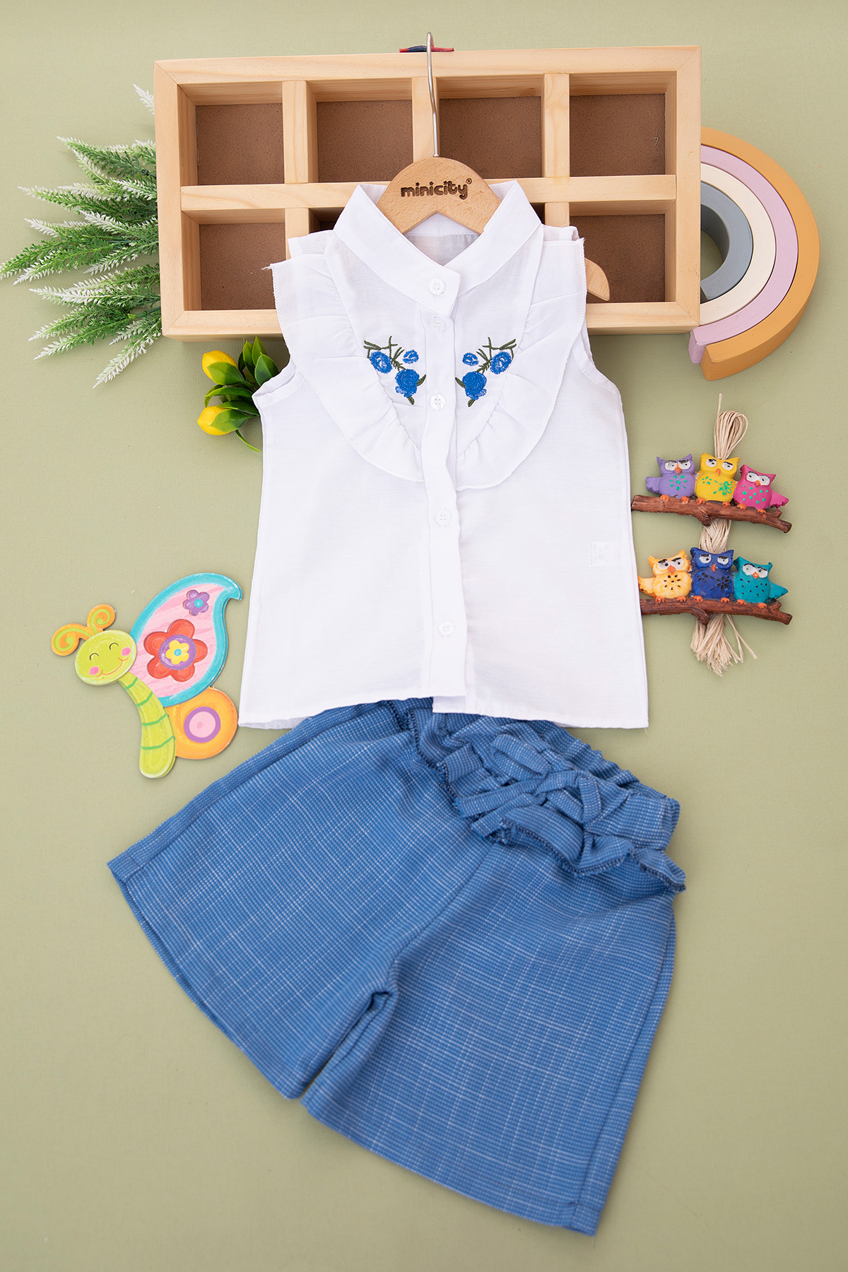 Kız Çocuk Robası Fırfırlı Nakışlı Gömlek Şort Takım (3-10 Yaş)