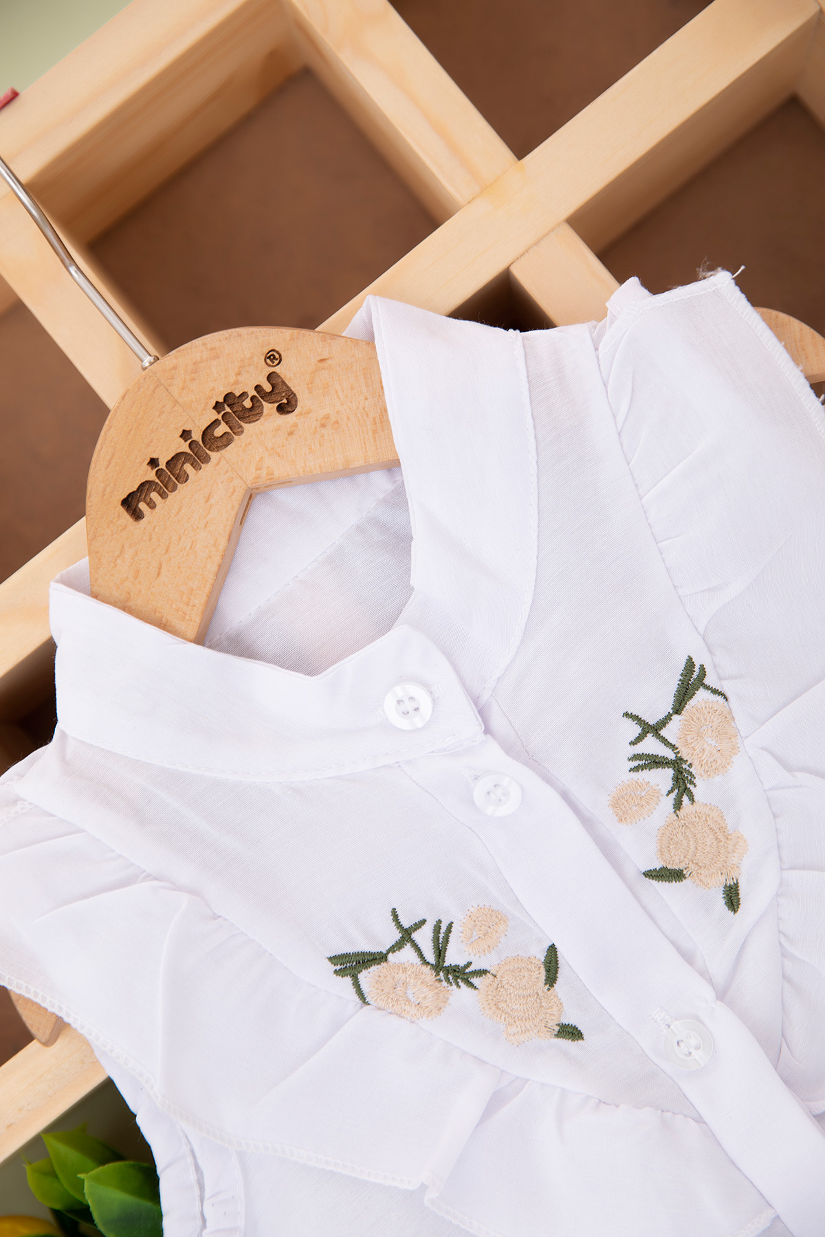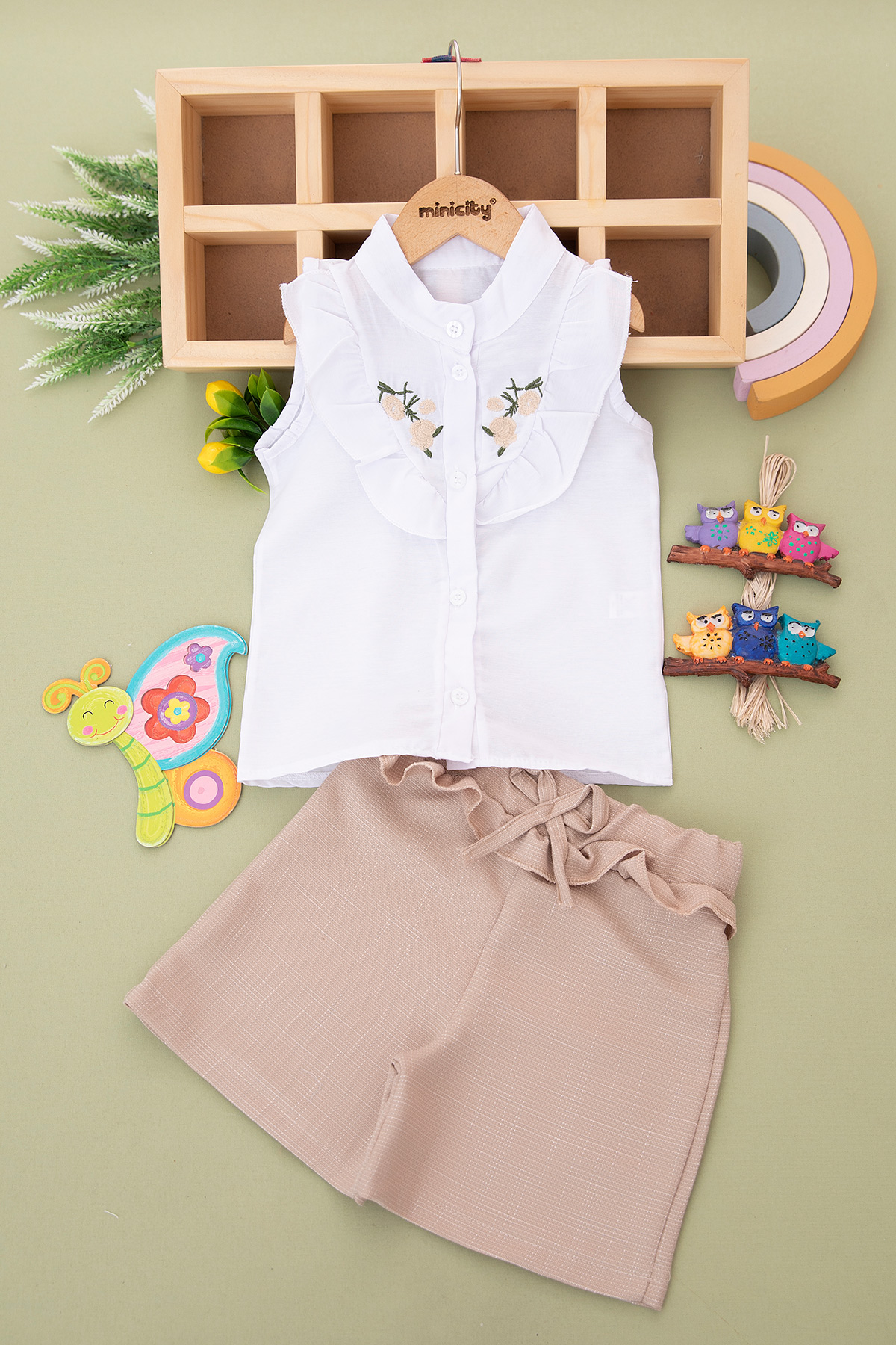 Kız Çocuk Robası Fırfırlı Nakışlı Gömlek Şort Takım (3-10 Yaş)
