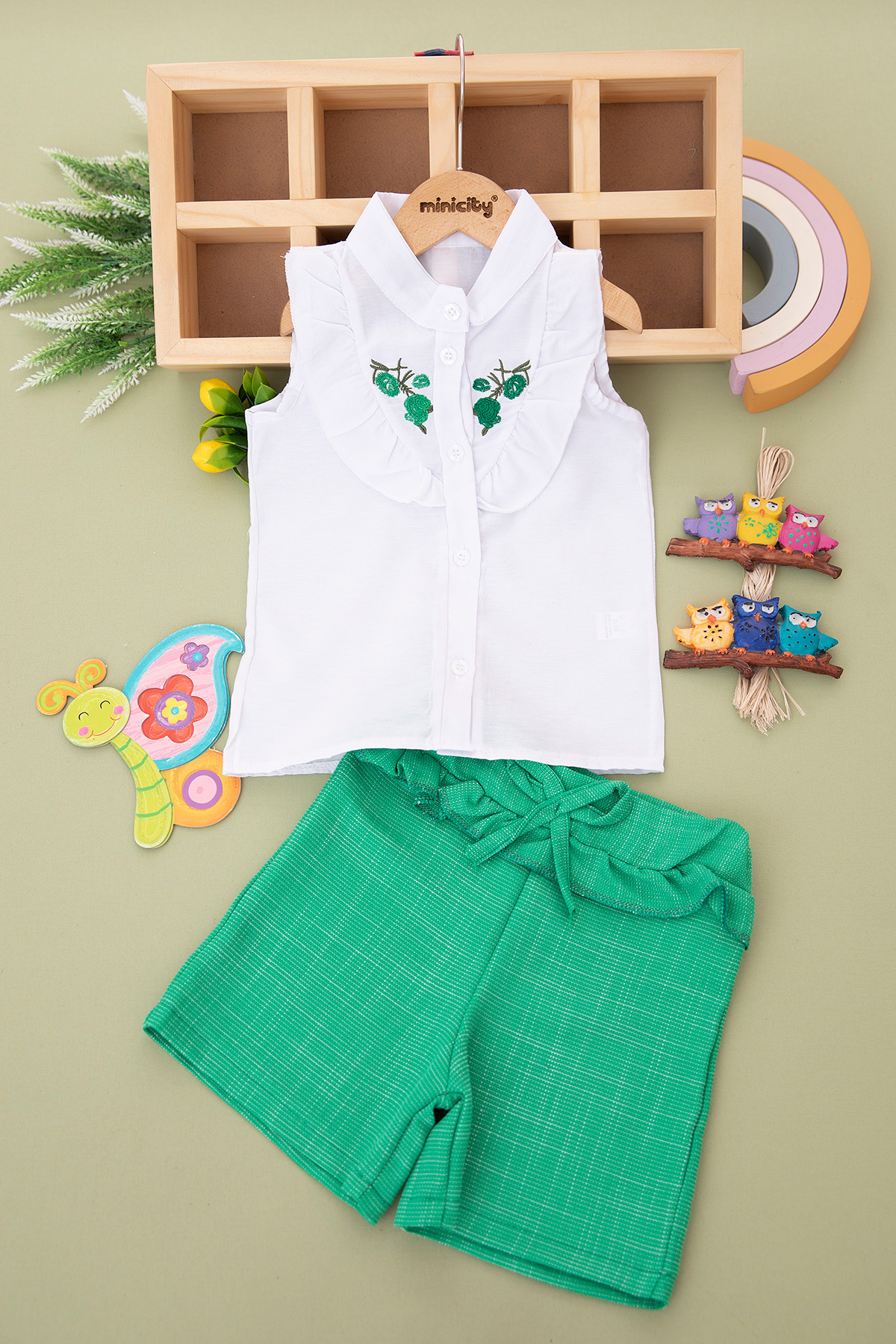 Kız Çocuk Robası Fırfırlı Nakışlı Gömlek Şort Takım (3-10 Yaş)