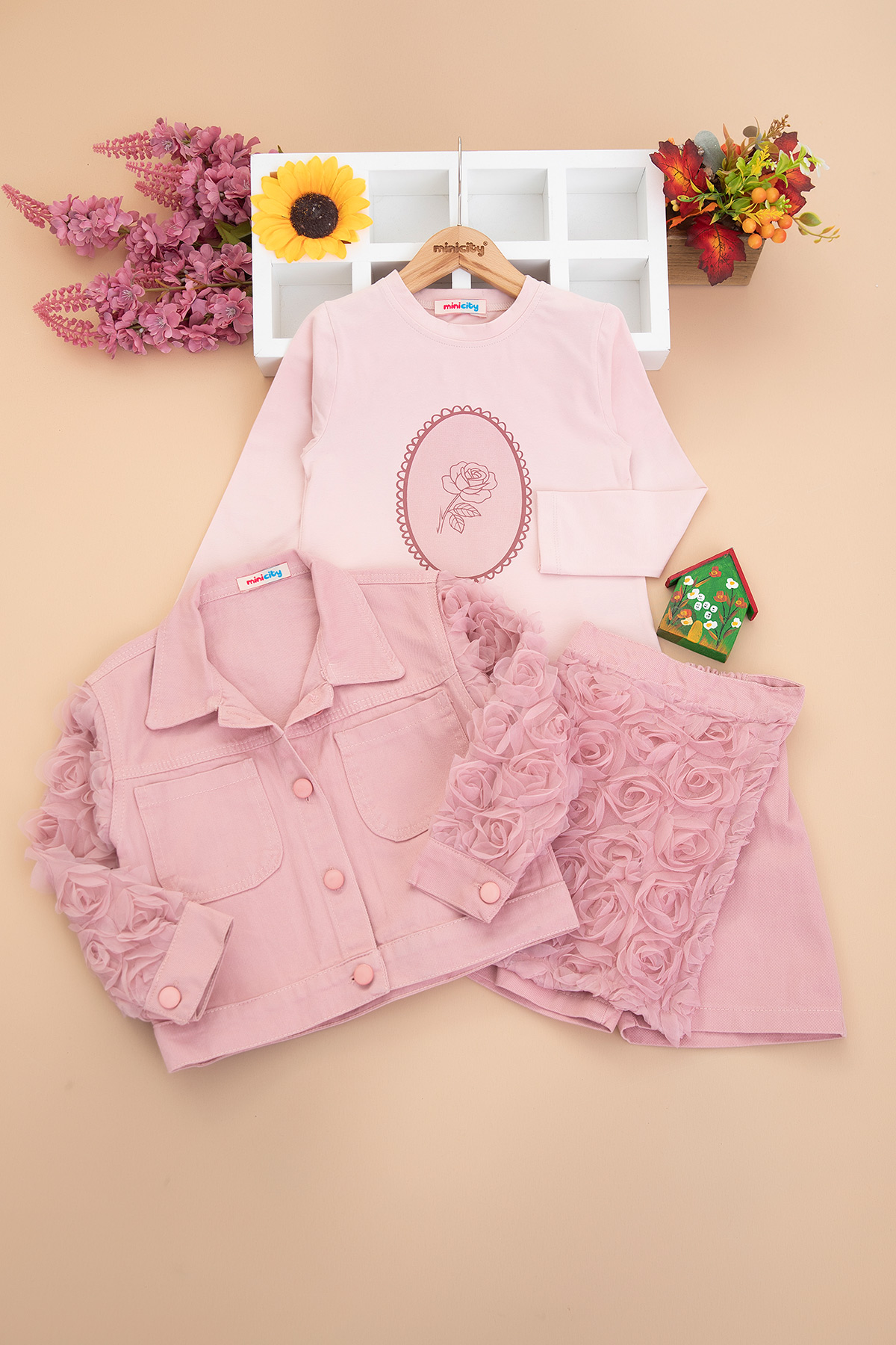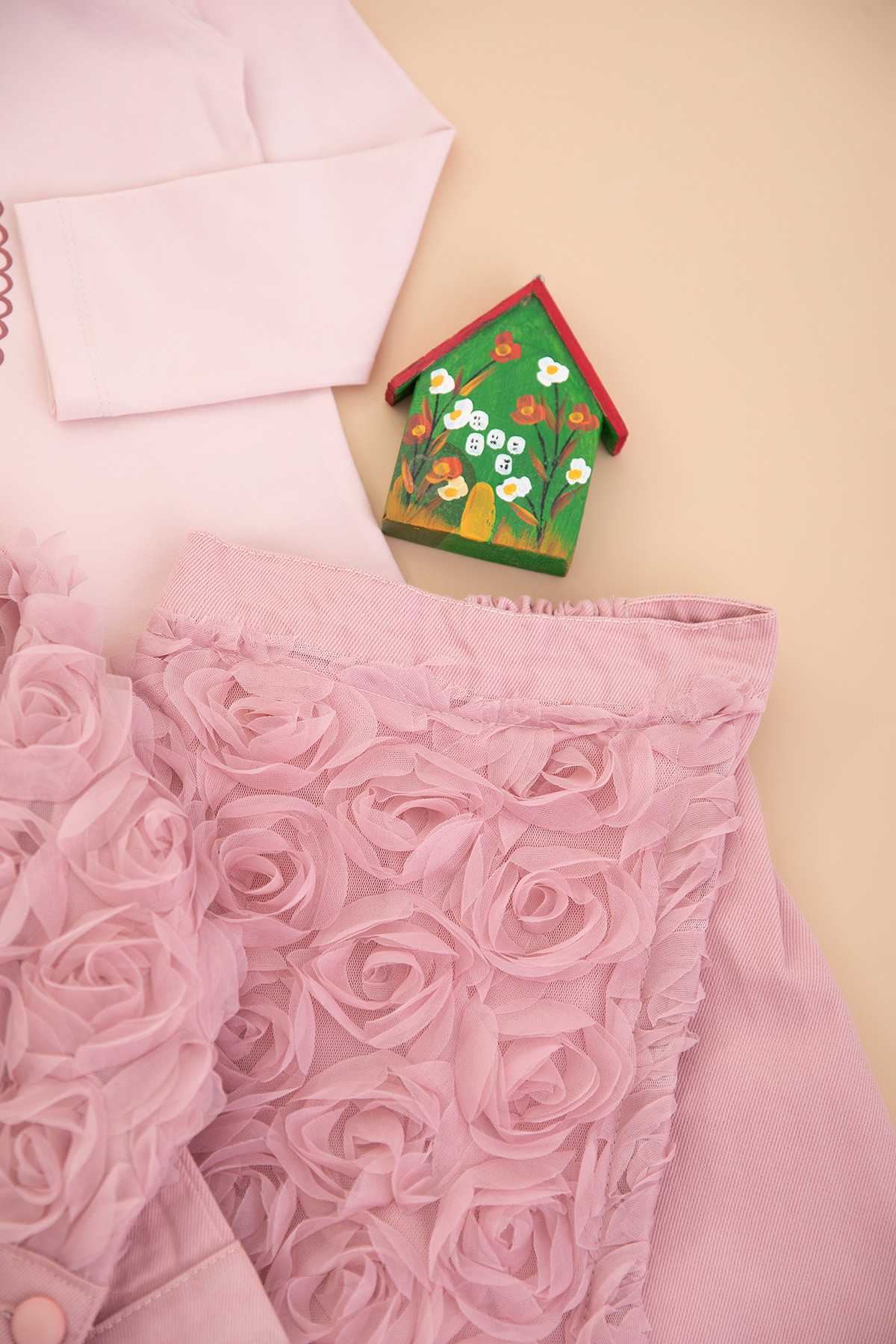 Kız Çocuk Rose Tül Şort Etek Takım - 1758 (5-8 Yaş)