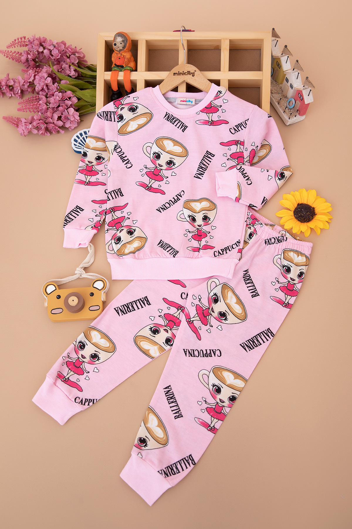 Kız Çocuk Rotasyon Baskılı Şardonlu Takım - 5077 (3-10 Yaş)