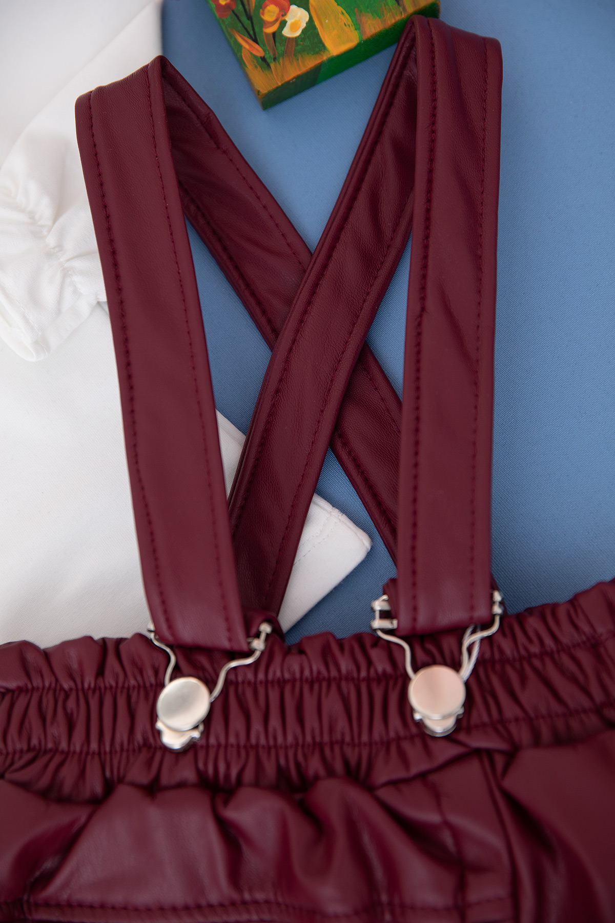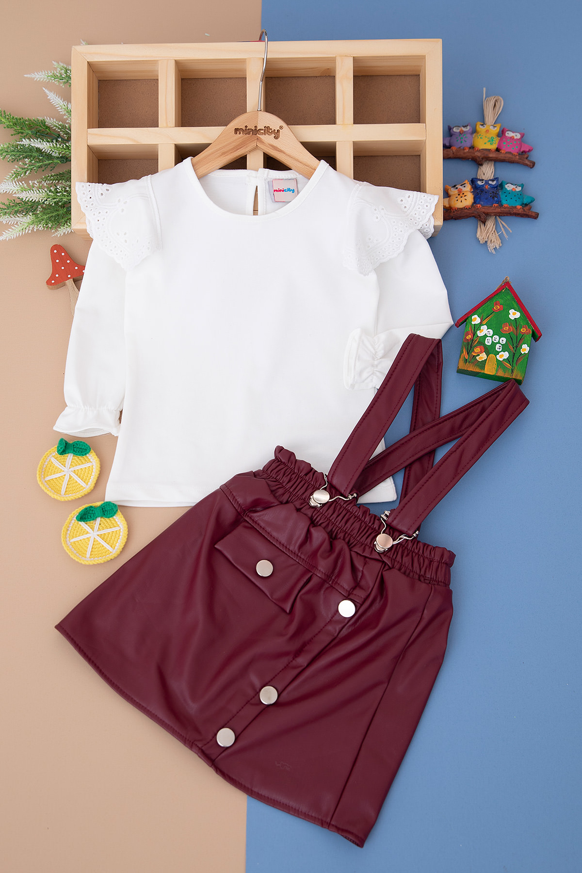 Kız Çocuk Sahte Cepli Deri Salopet Takım - 1012 (3-7 Yaş)
