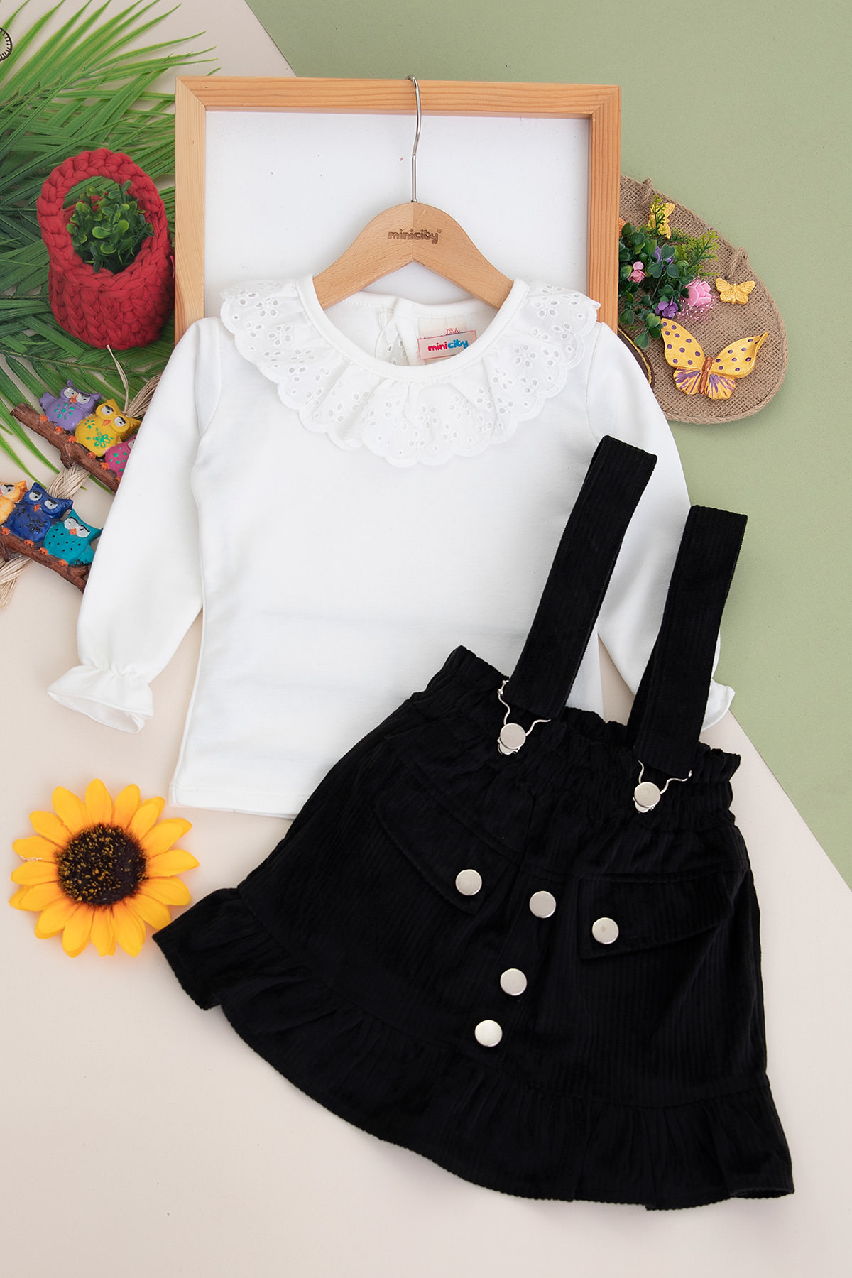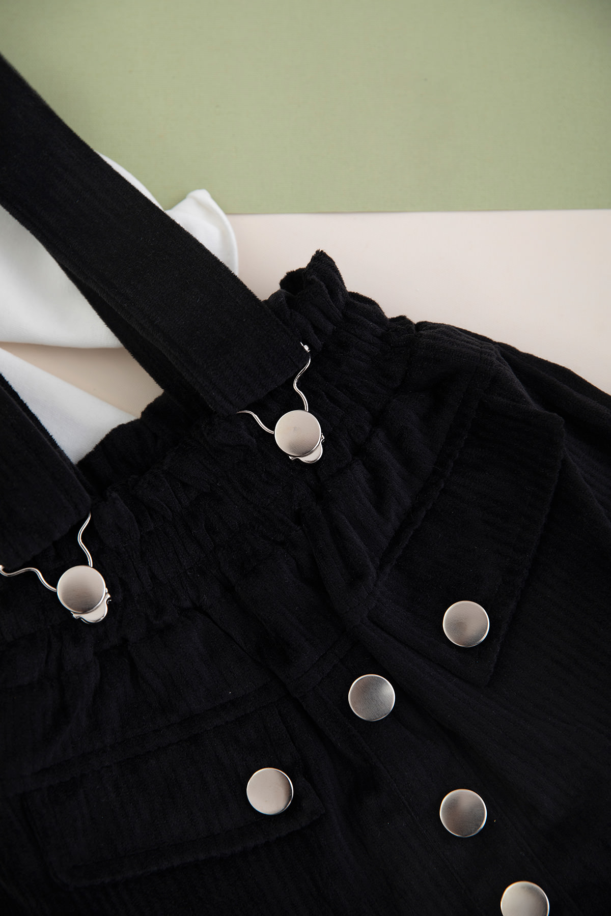 Kız Çocuk Sahte Cepli Kadife Salopet Takım - 1054 (3-7 Yaş)