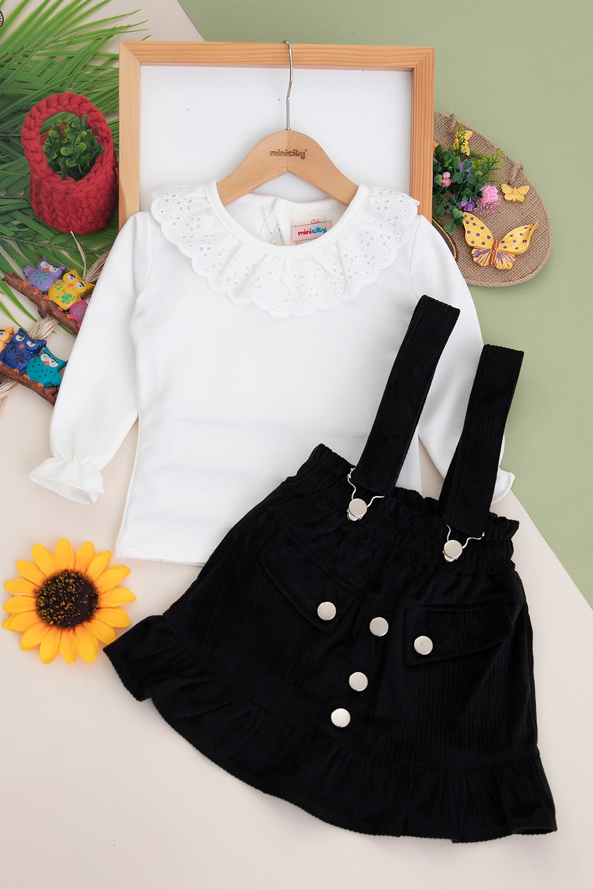 Kız Çocuk Sahte Cepli Kadife Salopet Takım - 1054 (8-12 Yaş)