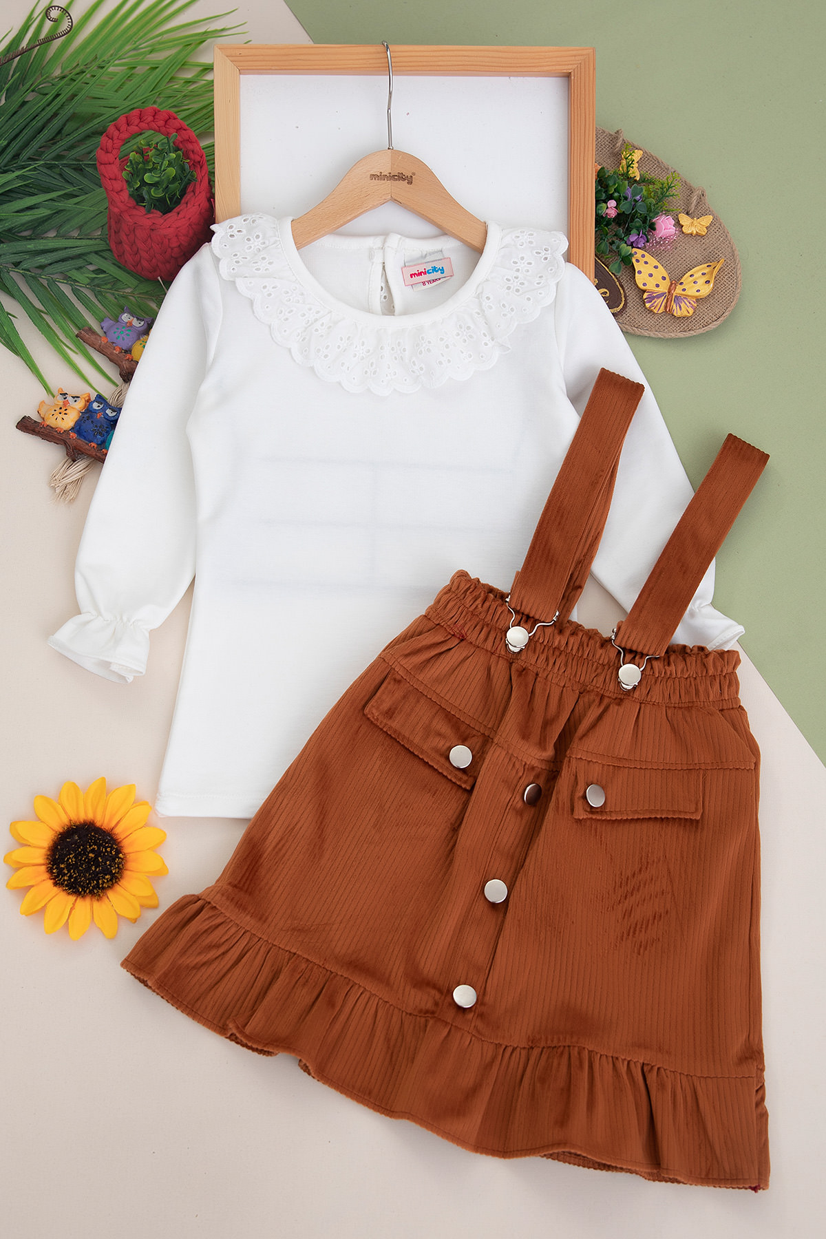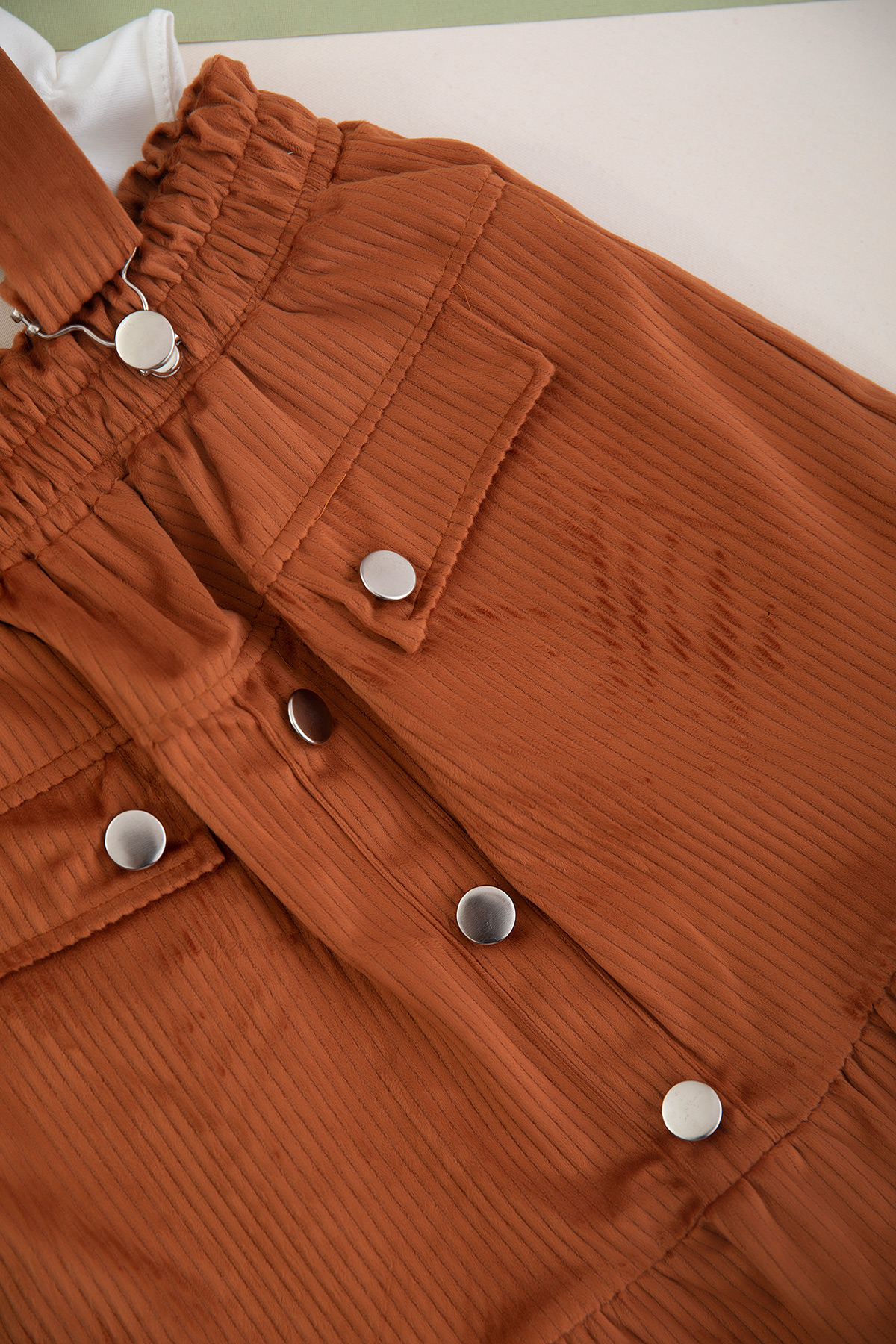 Kız Çocuk Sahte Cepli Kadife Salopet Takım - 1054 (8-12 Yaş)