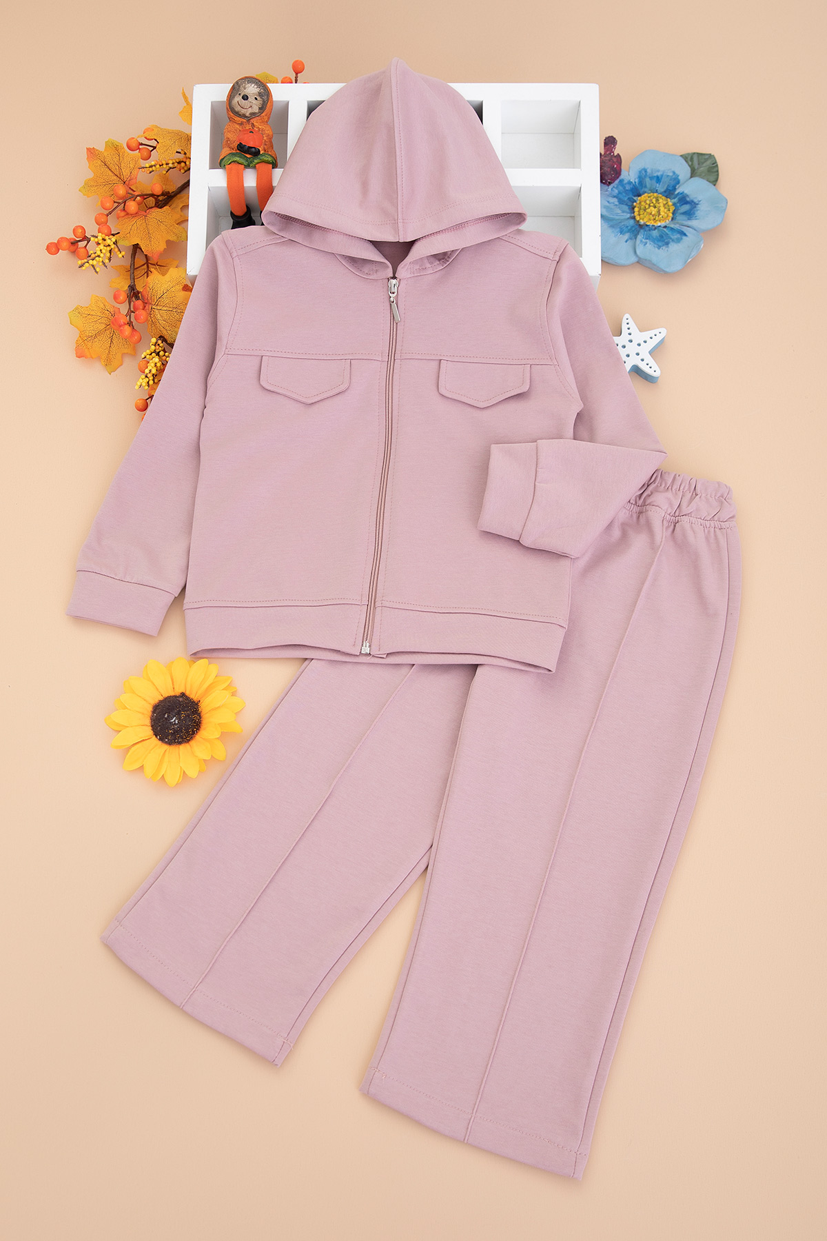 Kız Çocuk Sahte Cepli Kapşonlu Takım - 70330 (5-12 Yaş)