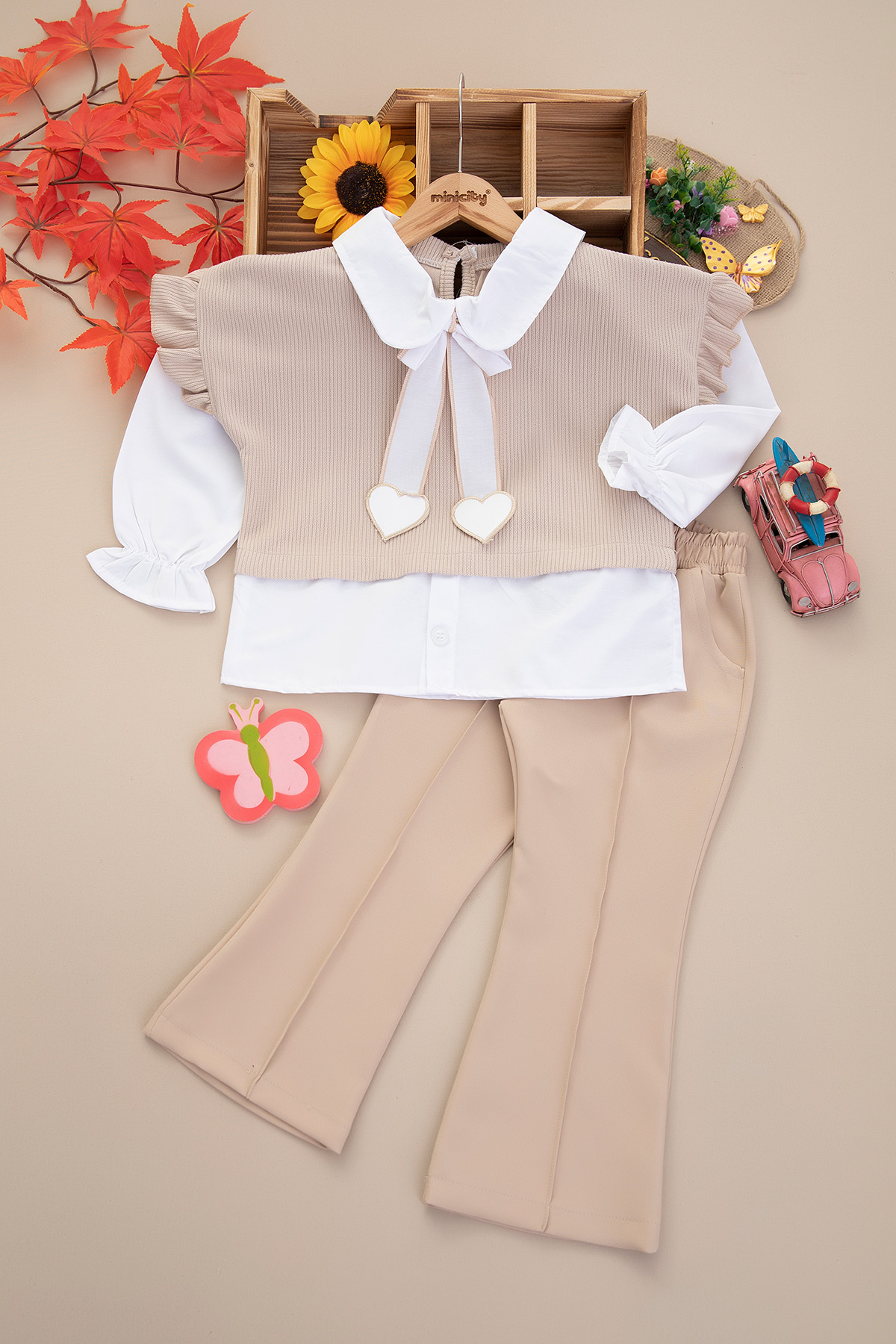 Kız Çocuk Sahte Gömlekli Kalpli Takım - 177 (9-12 Yaş)