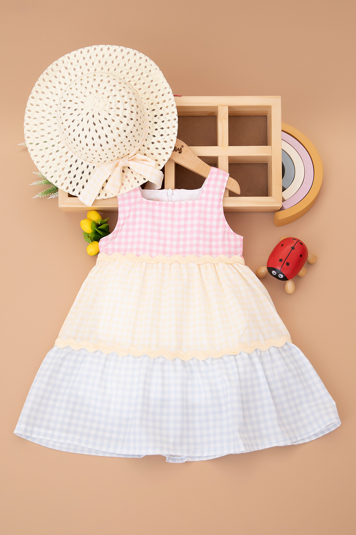 Kız Çocuk Sandık Yaka Elbise - 7175 (6-9 Yaş)