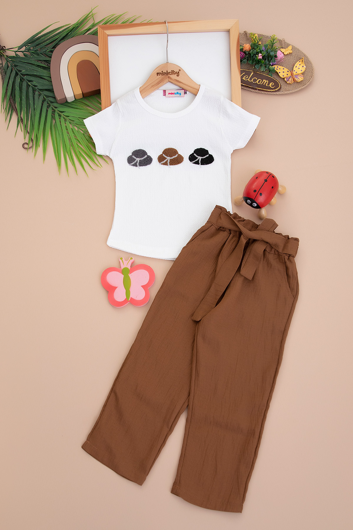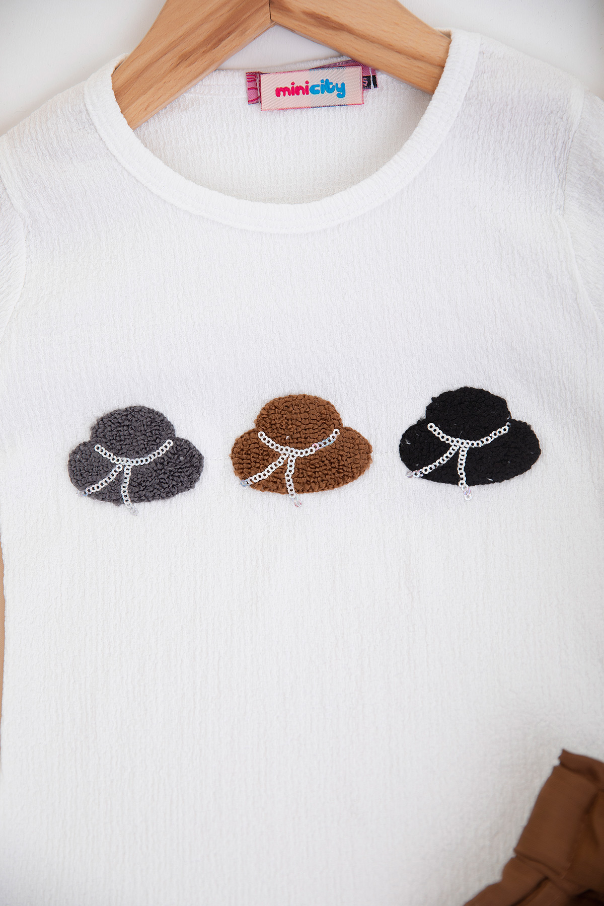Kız Çocuk Şapka Nakışlı Pantolonlu Takım (3-7 Yaş)