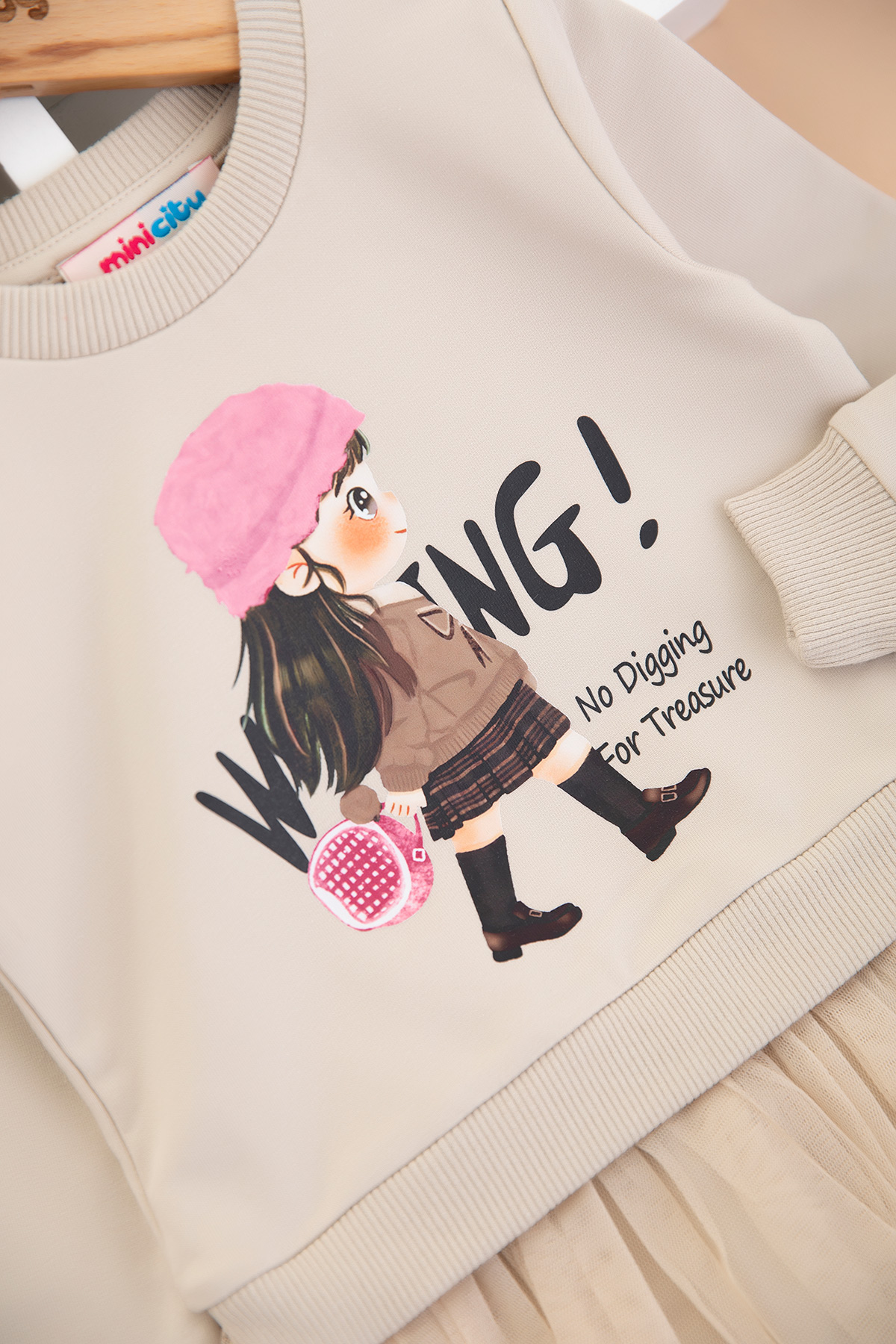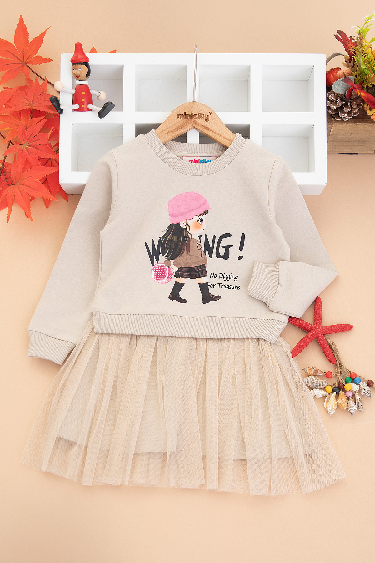 Kız Çocuk Şapkalı Kız Baskılı Elbise - 7775-1 (3-7 Yaş)