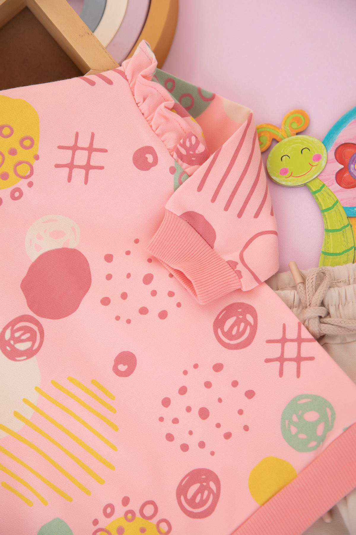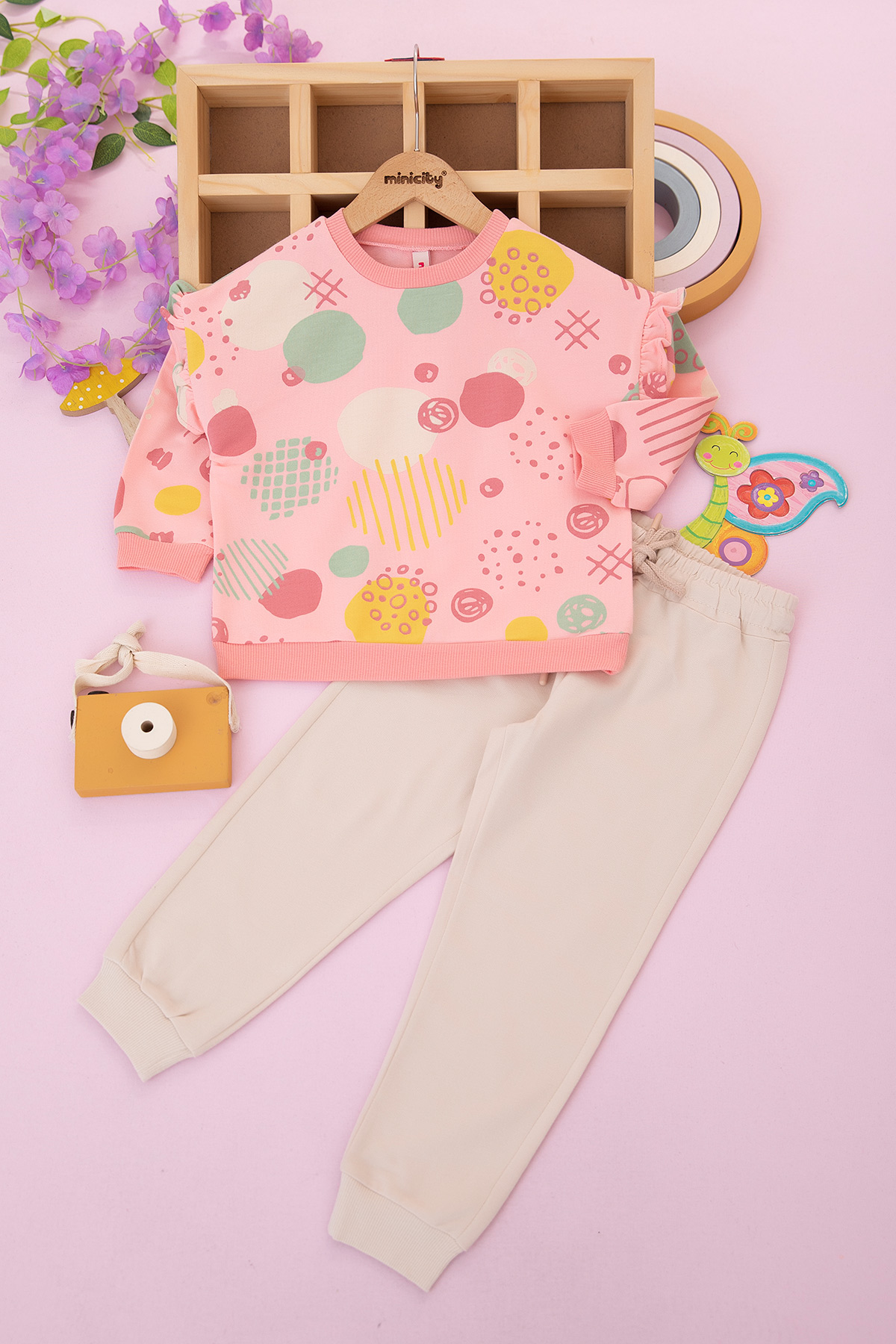 Kız Çocuk Şekiller Baskılı Takım - 9077 (3-7 Yaş)