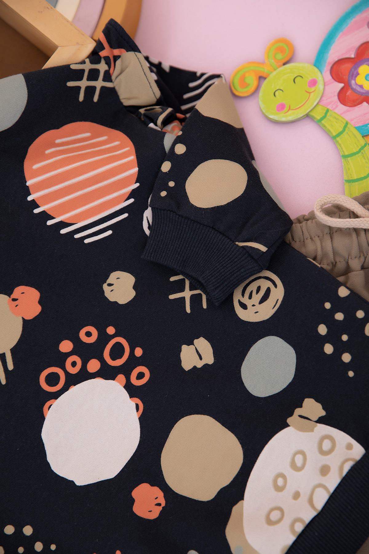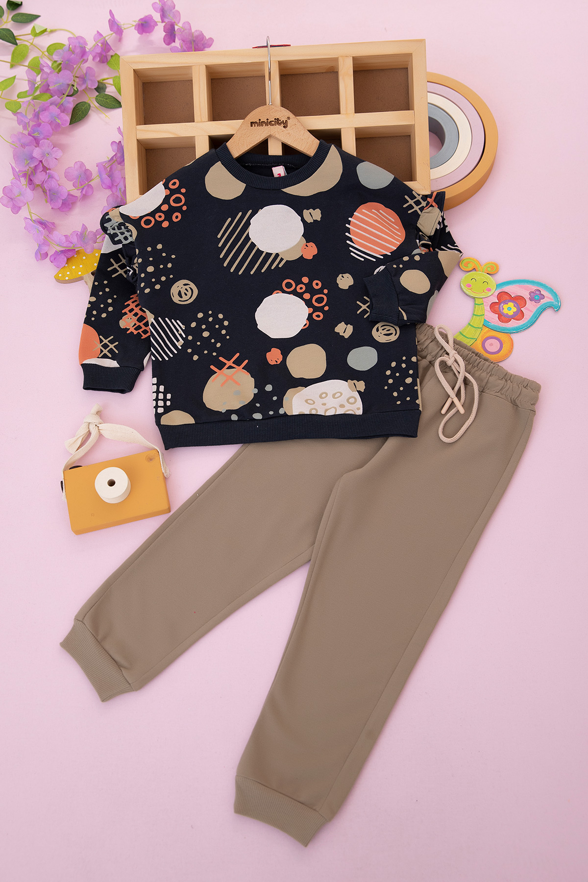 Kız Çocuk Şekiller Baskılı Takım - 9077 (3-7 Yaş)