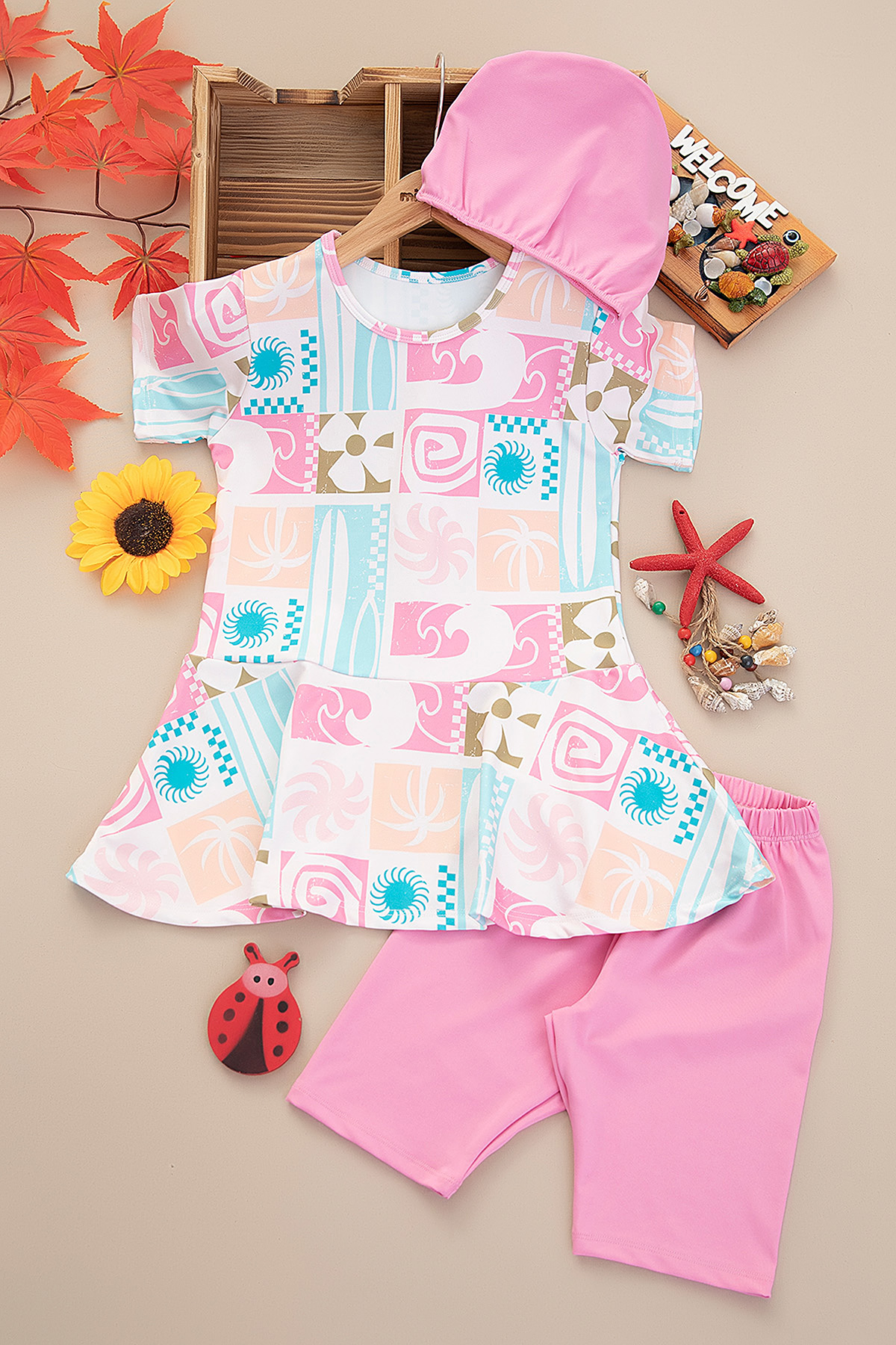 Kız Çocuk Şekiller Baskılı Tesettür Mayo - 3497 (13-16 Yaş)