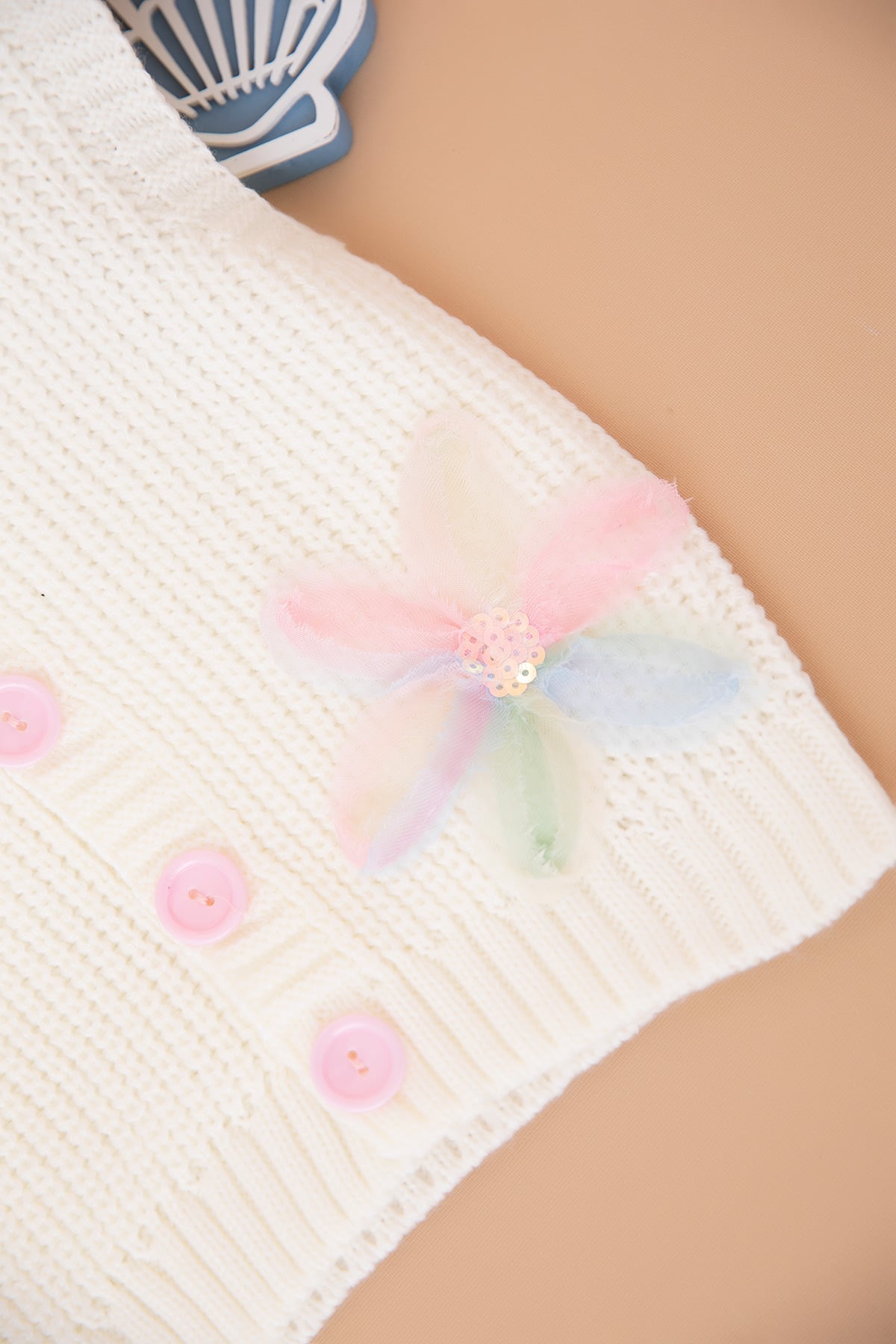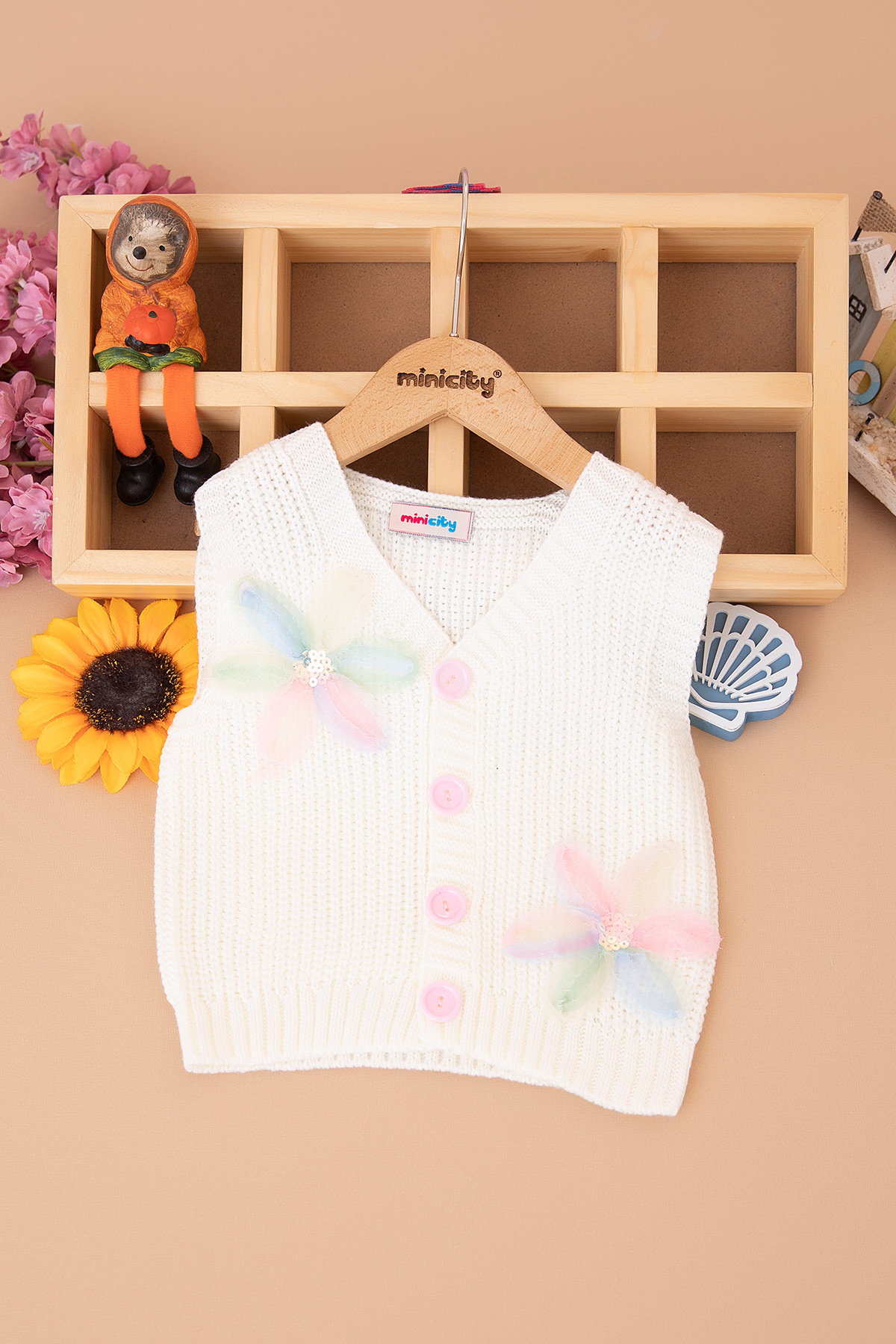 Kız Çocuk Selanik Çiçekli Triko Yelek - 0515 (1-5 Yaş)
