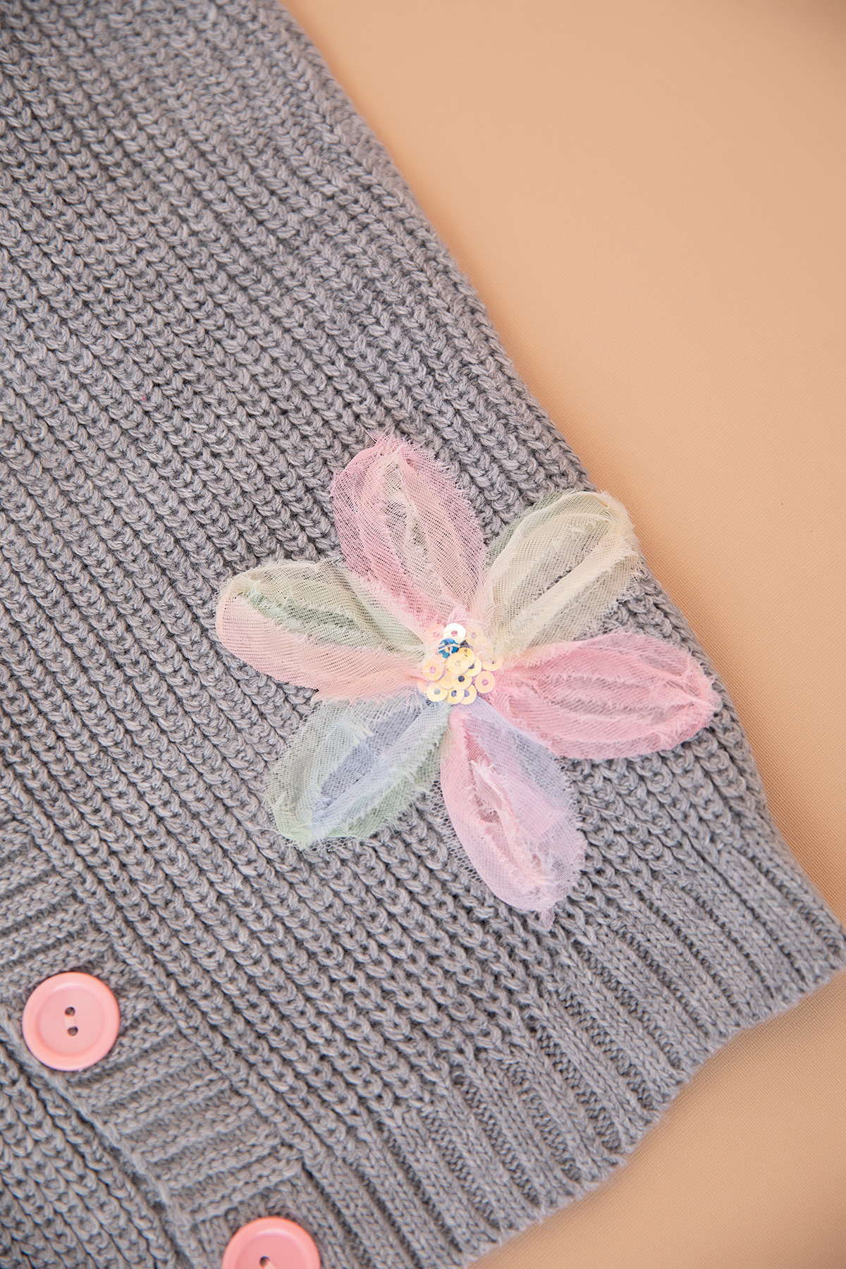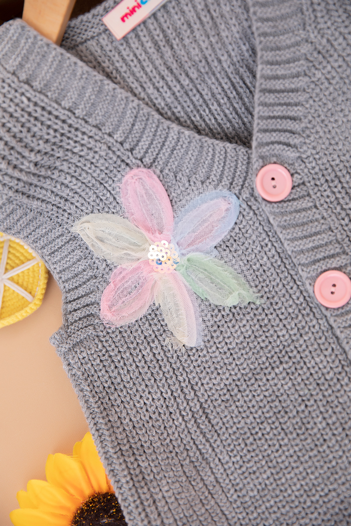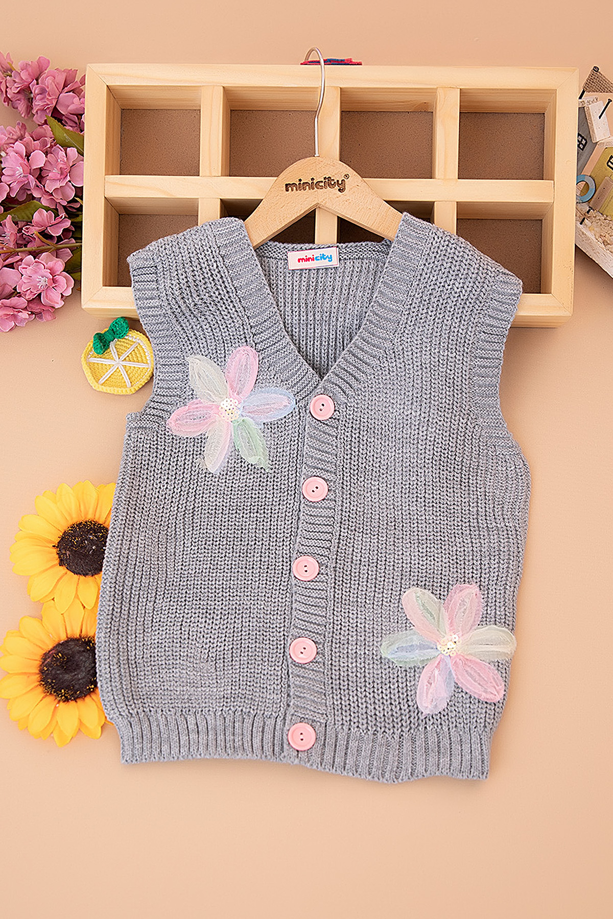 Kız Çocuk Selanik Çiçekli Triko Yelek - 2104 (5-8 Yaş)