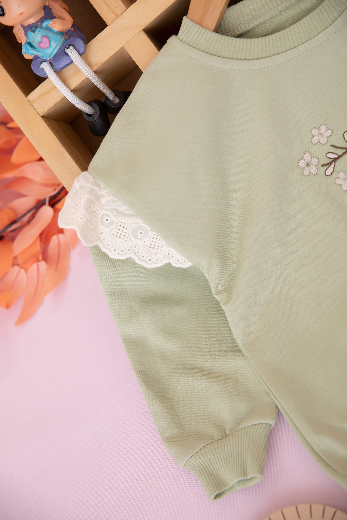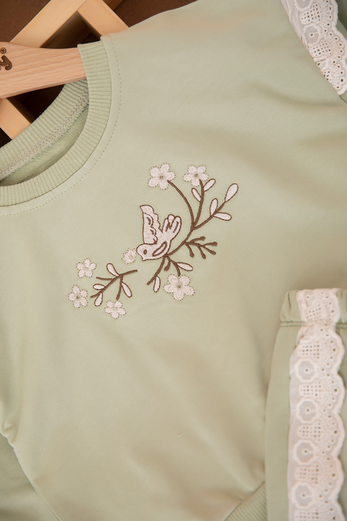 Kız Çocuk Serçe Çiçek Nakışlı Takım - 3042 (2-6 Yaş)