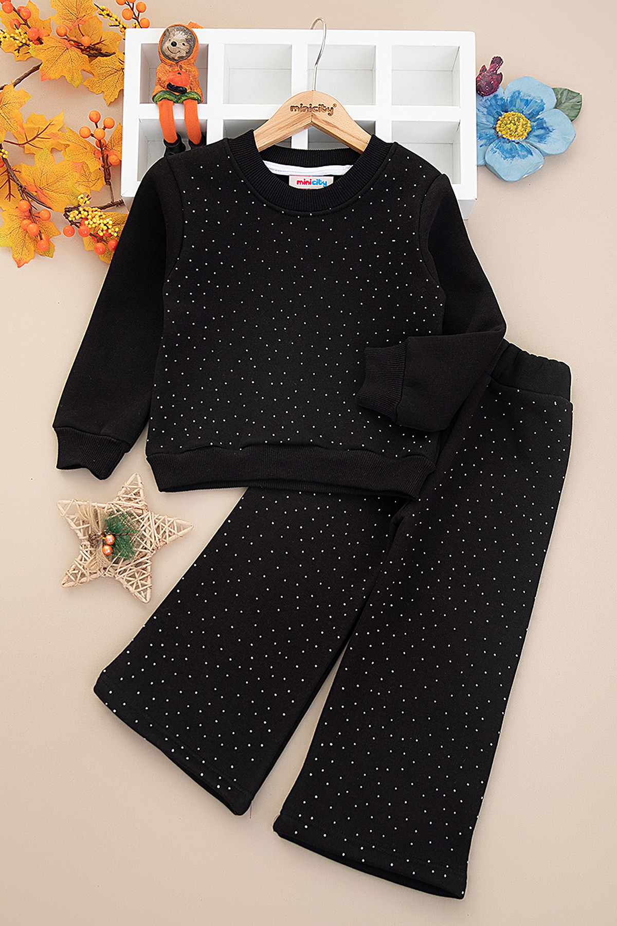 Kız Çocuk Serpme Taşlı Baskılı Üçip Takım (3-10 Yaş)