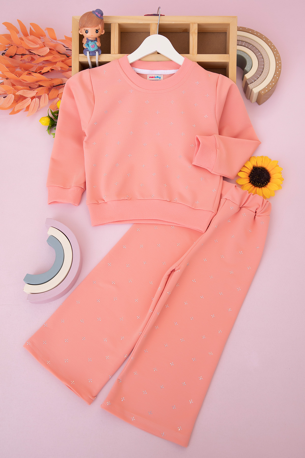 Kız Çocuk Serpme Yıldız Taşlı Mevsimlik Takım (3-10 Yaş)