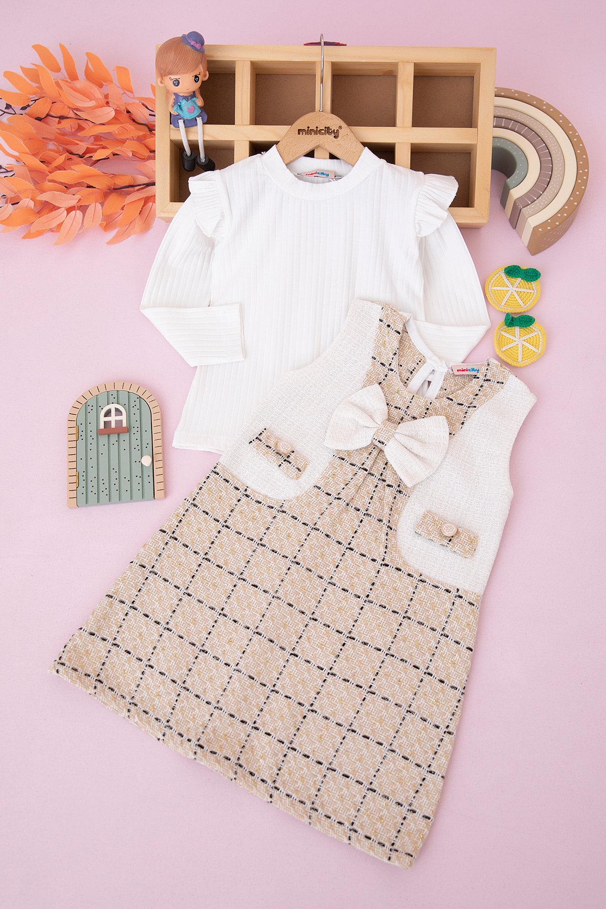 Kız Çocuk Simli Ekoseli Elbise - 308 (3-6 Yaş)