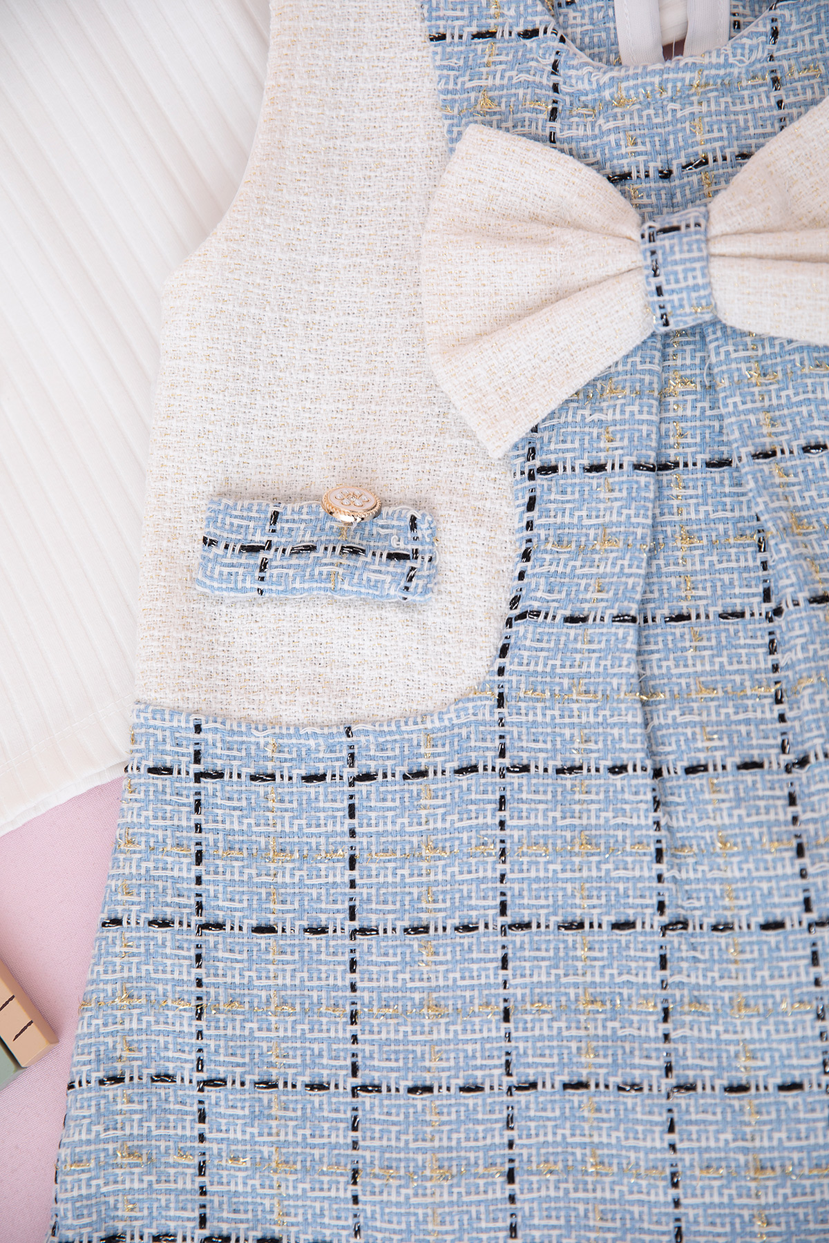 Kız Çocuk Simli Ekoseli Elbise - 308 (3-6 Yaş)