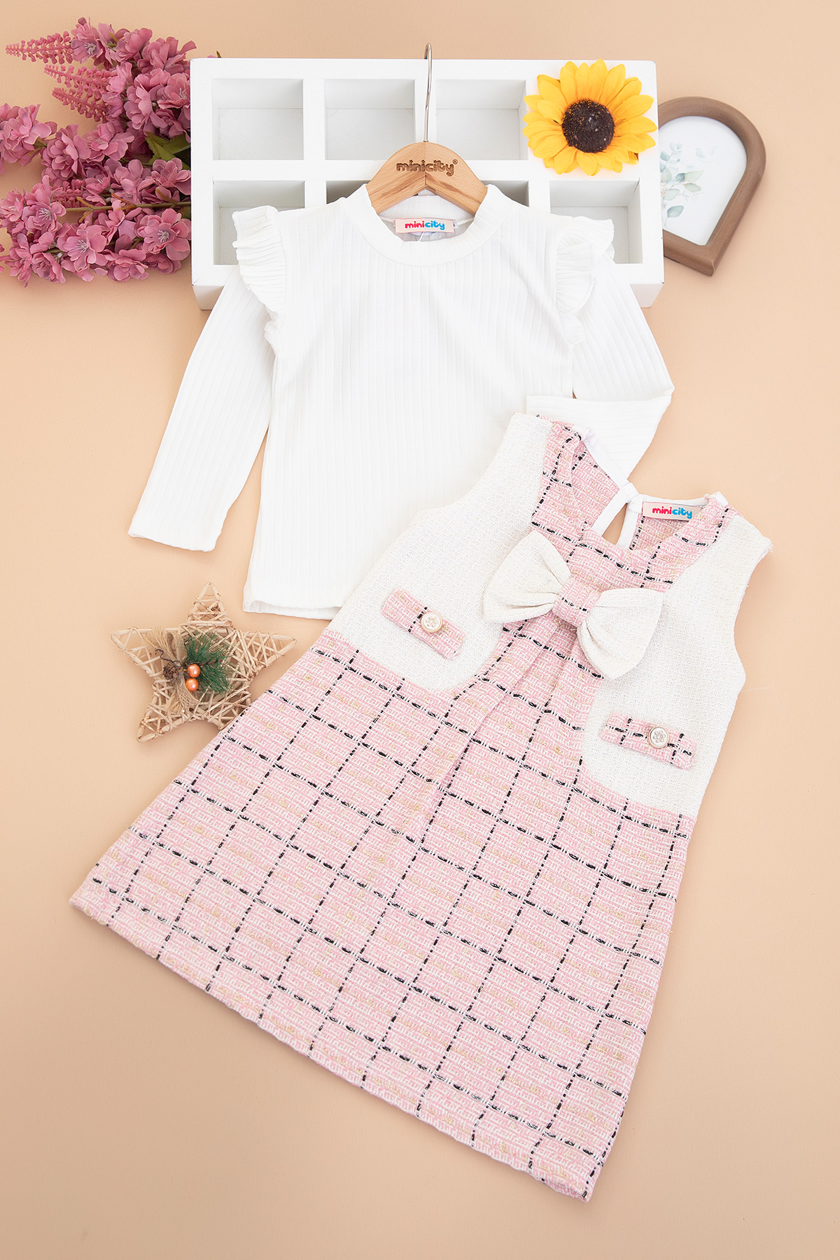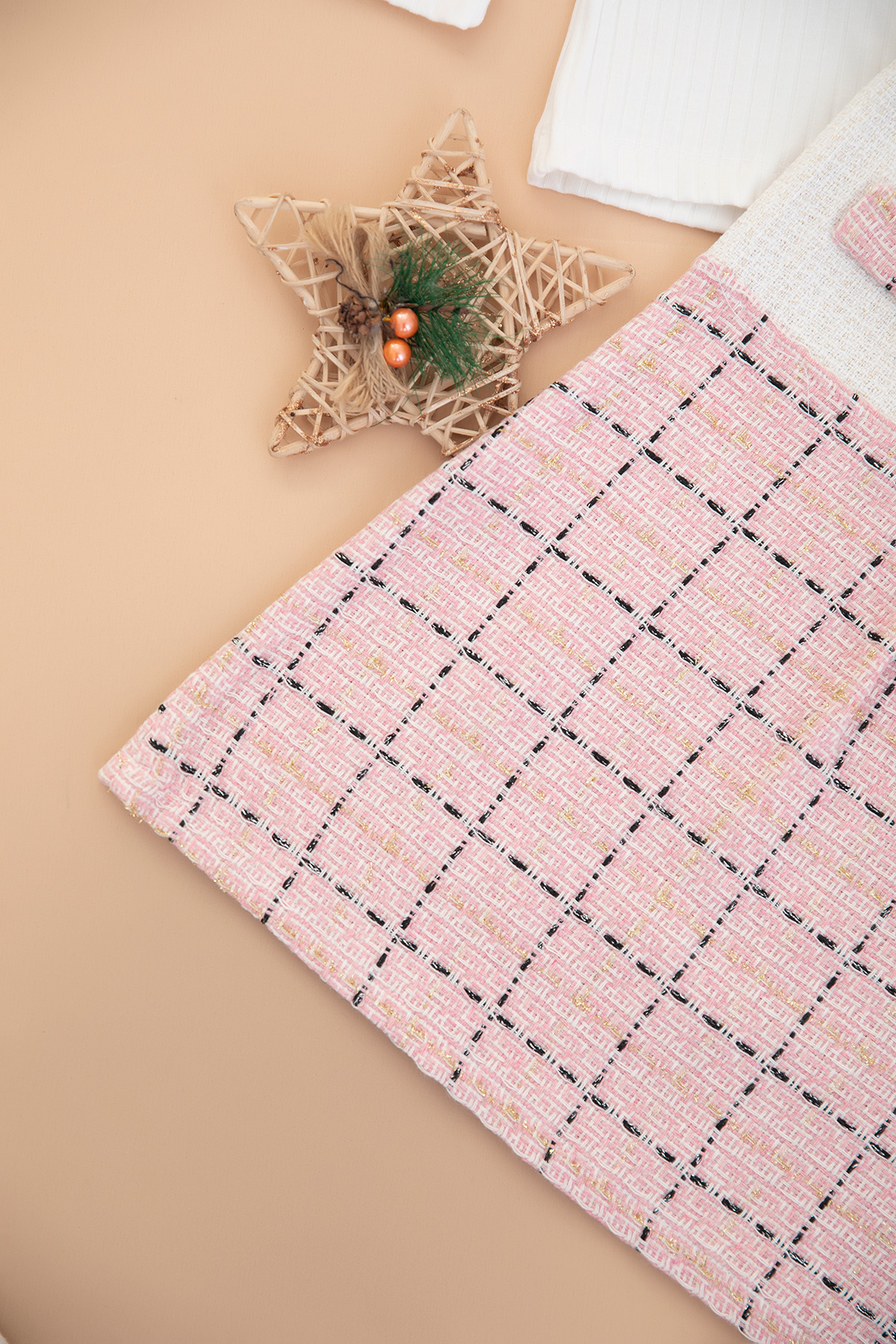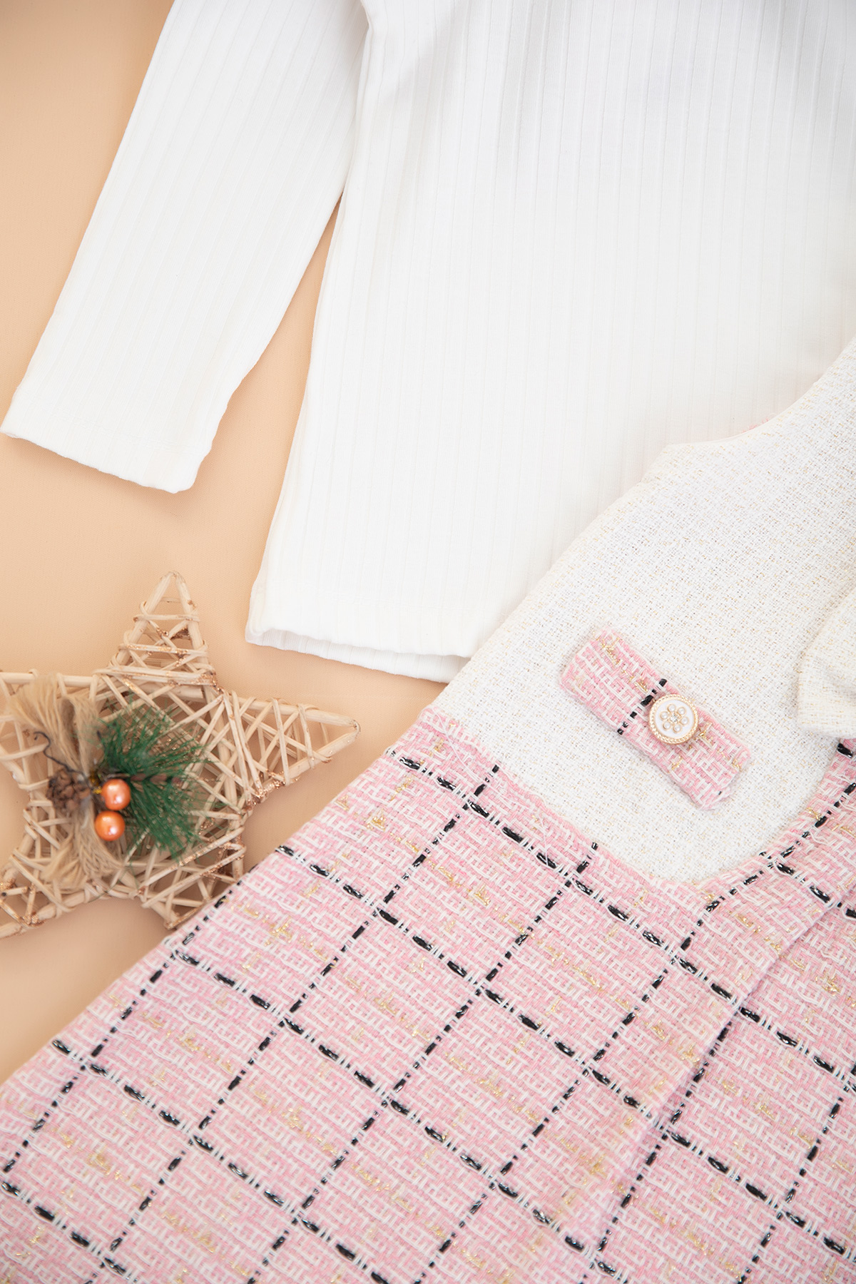 Kız Çocuk Simli Ekoseli Elbise - 308 (3-6 Yaş)
