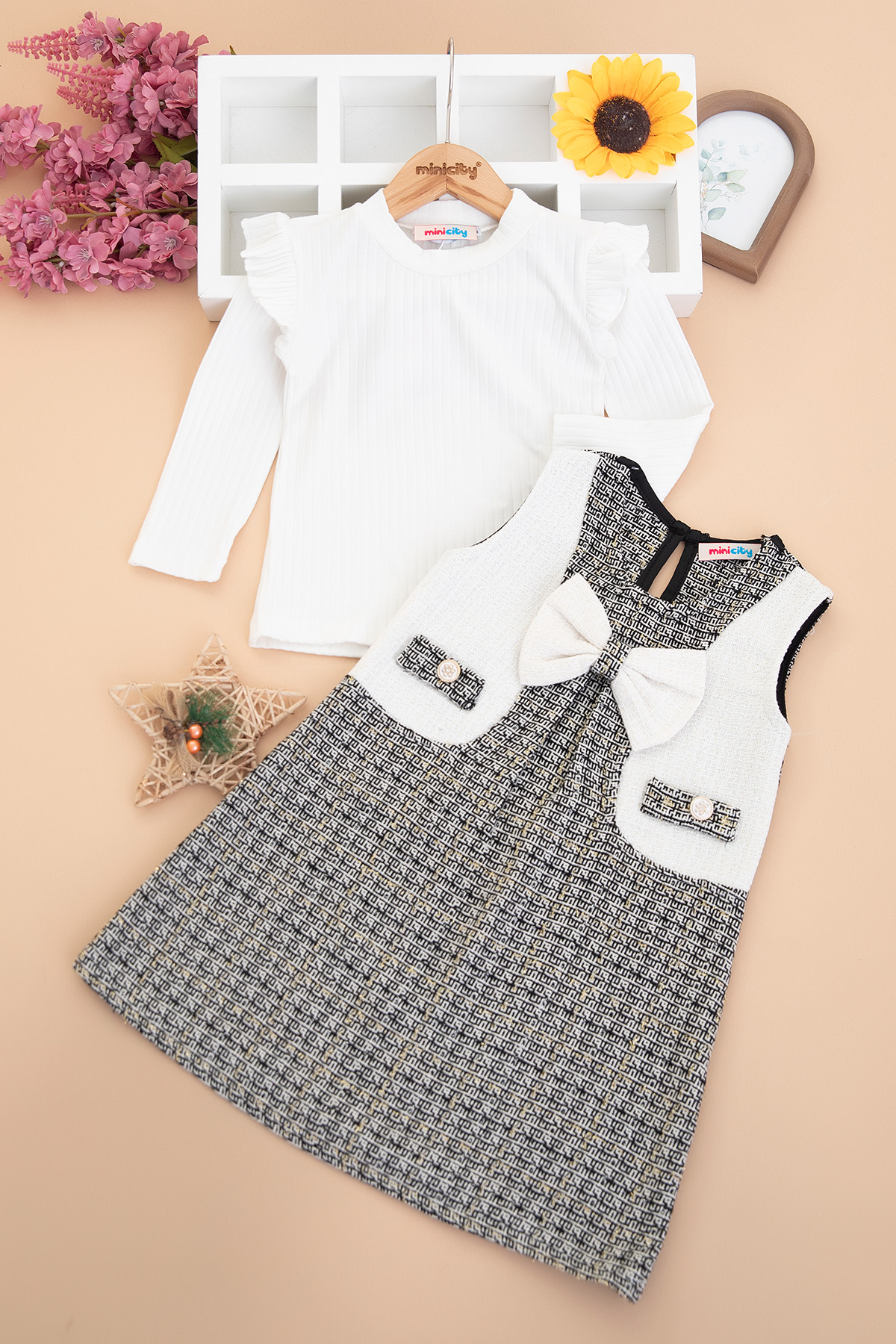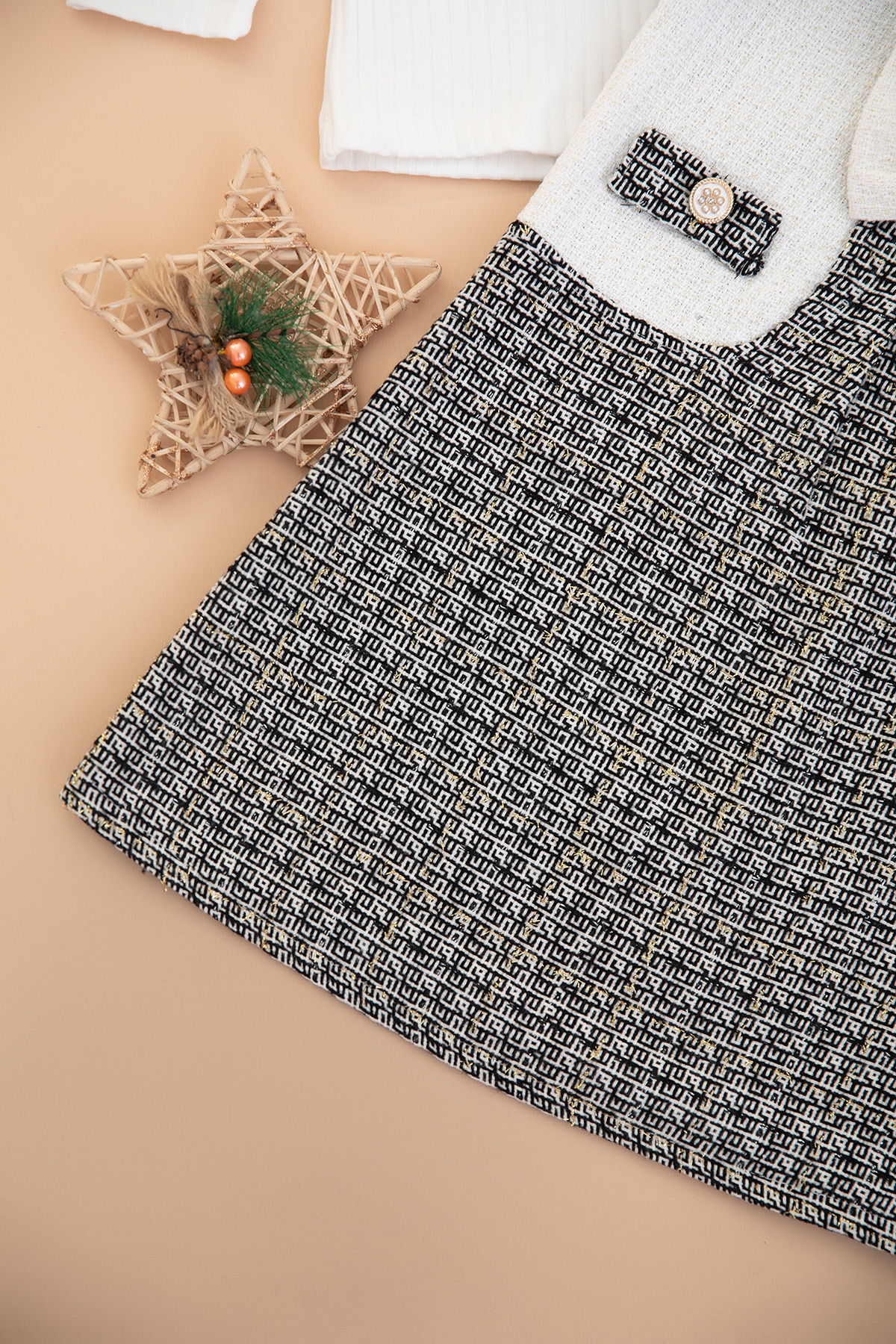 Kız Çocuk Simli Ekoseli Elbise - 308 (3-6 Yaş)