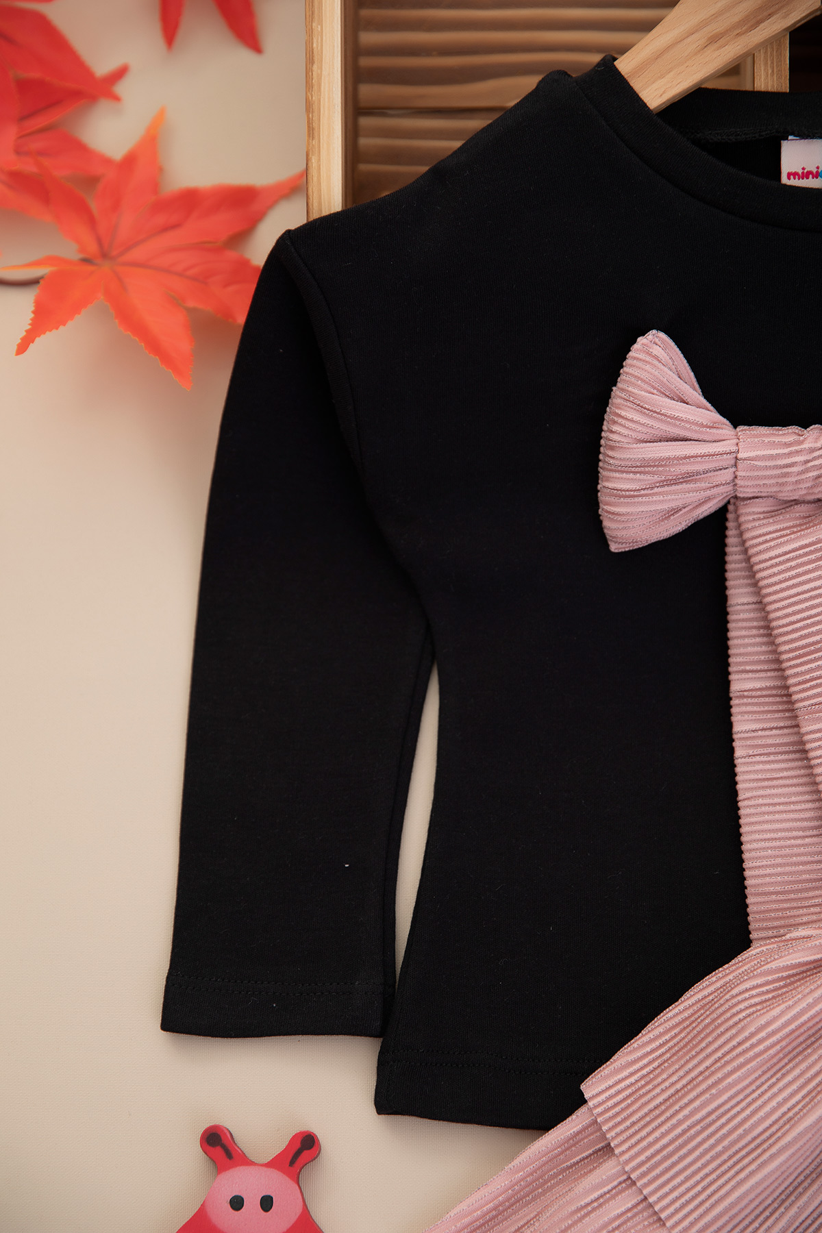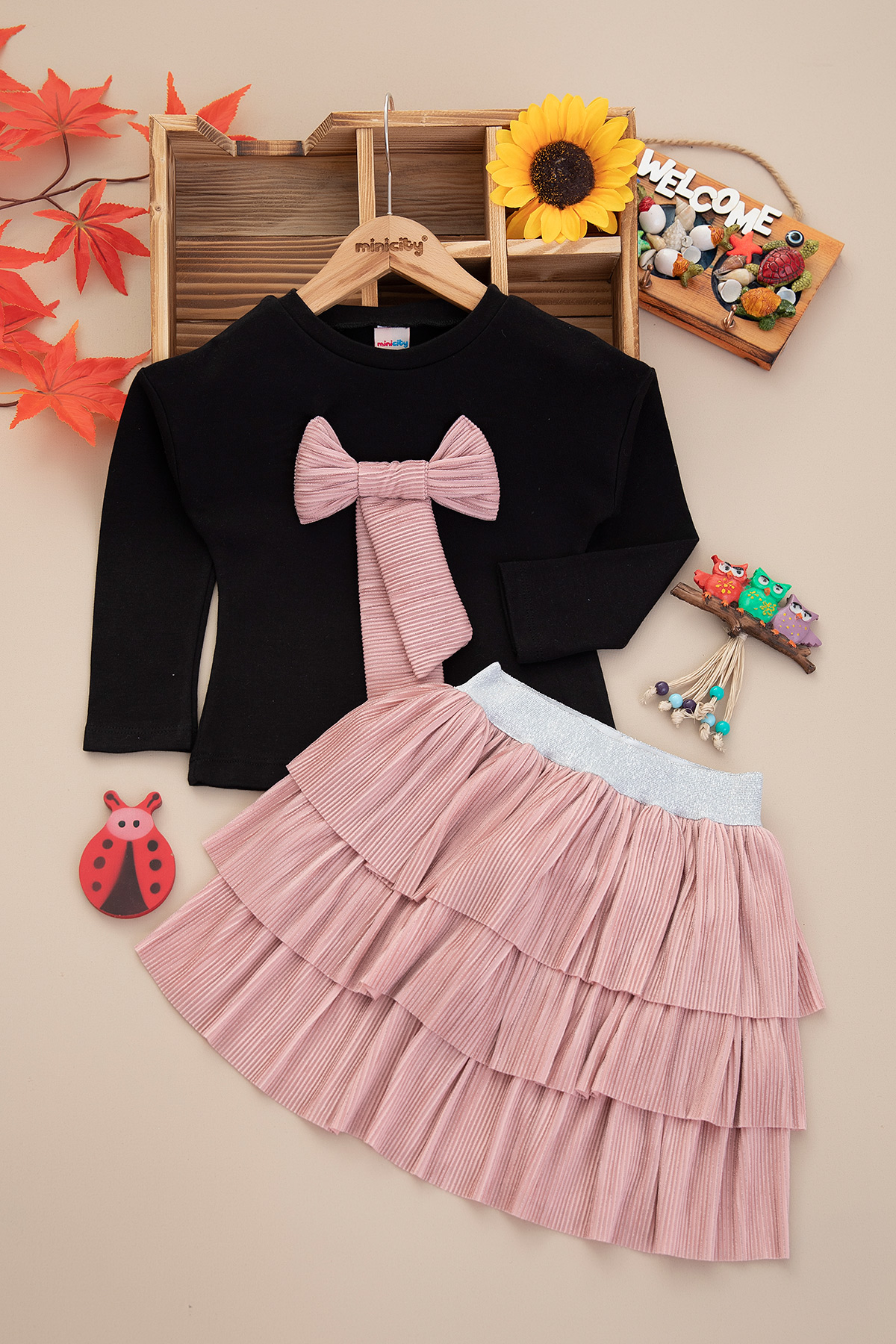 Kız Çocuk Simli Etekli Papyon Badili Takım - 6421 (3-6 Yaş)