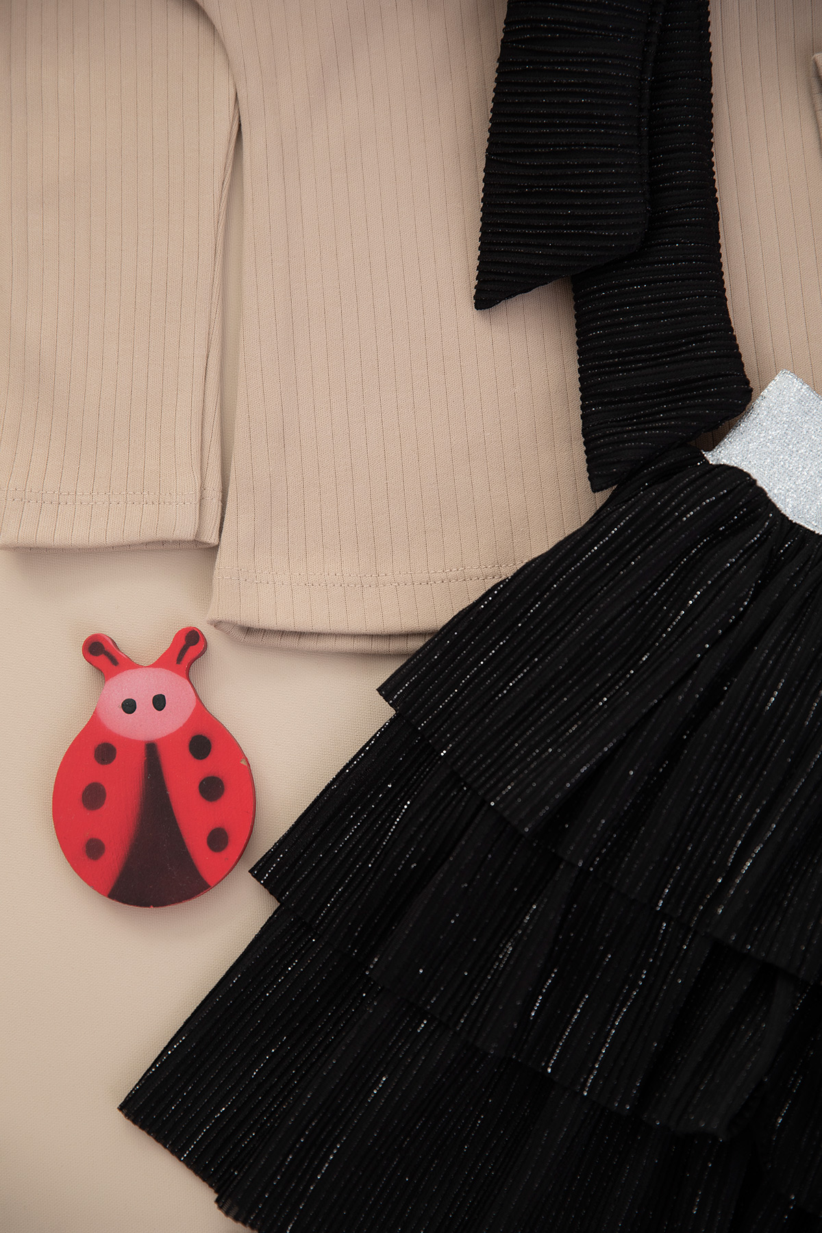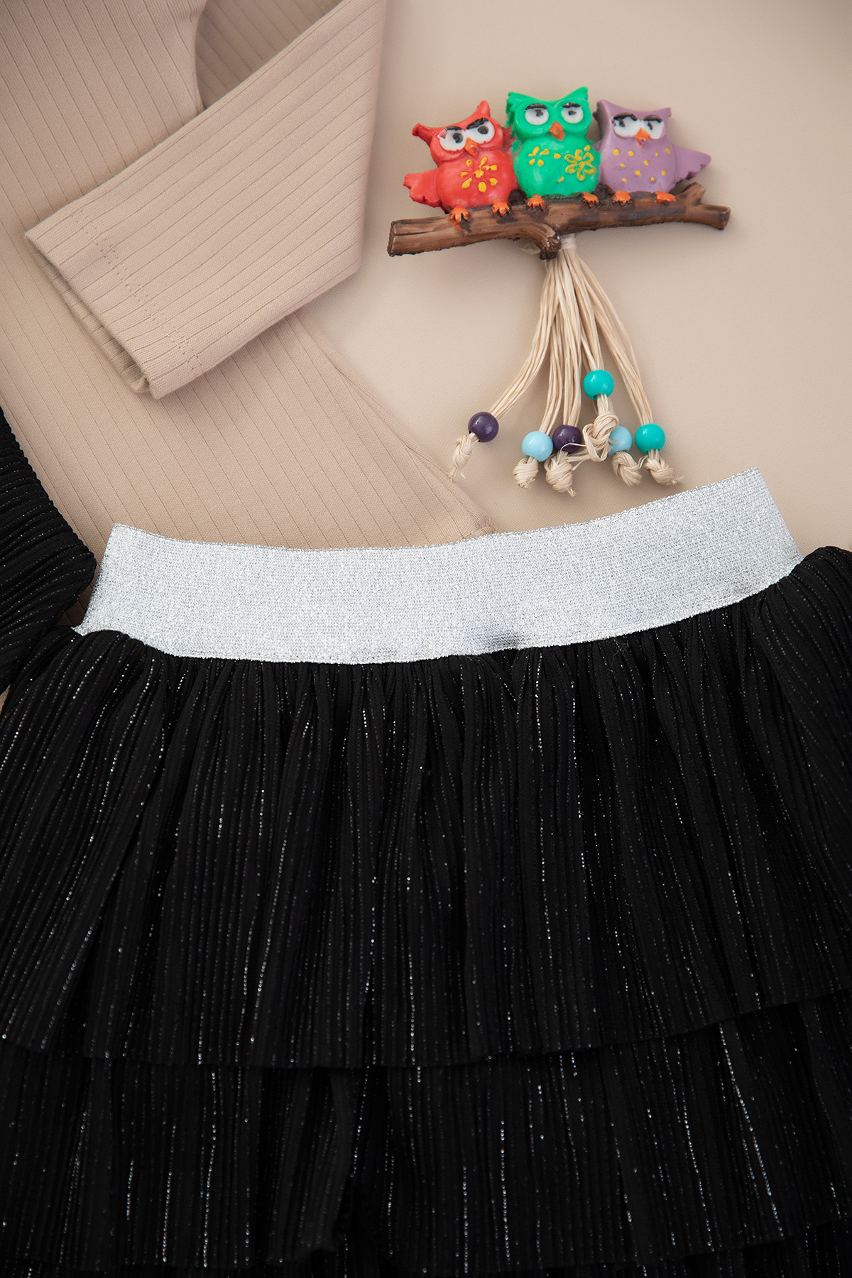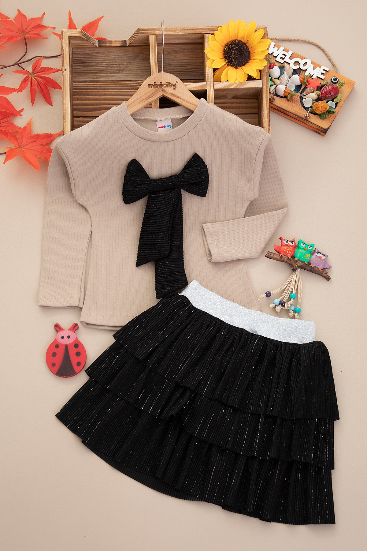 Kız Çocuk Simli Etekli Papyon Badili Takım - 6421 (3-6 Yaş)